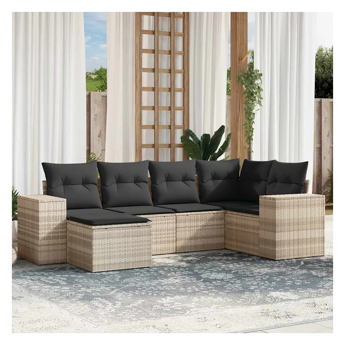 Cet ensemble de canapés de jardin est le complément parfait de votre arrière-cour, terrasse ou patio, offrant un espace confortable et accueillant pour discuter avec la famille et les amis ou simplement se détendre et profiter de l'extérieur. Matériau durable : la résine tressée, également connue sous le nom de poly rotin, est un matériau synthétique solide et nécessitant peu d'entretien qui ressemble au rotin naturel. Il est léger, facile à nettoyer et couramment utilisé pour les meubles d'extérieur en raison de sa durabilité et de ses propriétés de résistance aux intempéries.Expérience d'assise confortable : ce mobilier d'extérieur, doté de coussins épais, offre une expérience d'assise confortable.Housse amovible et lavable : ces coussins de siège sont dotés de housses amovibles pour un lavage et un entretien faciles.Conception modulaire : cet ensemble de meubles d'extérieur a une conception modulaire, ce qui le rend complètement flexible et facile à déplacer, afin que vous puissiez créer un agencement de meubles d'extérieur personnalisé. Bon à savoir :Pour que vos meubles d'extérieur restent beaux, nous vous recommandons de les protéger avec une housse imperméable.