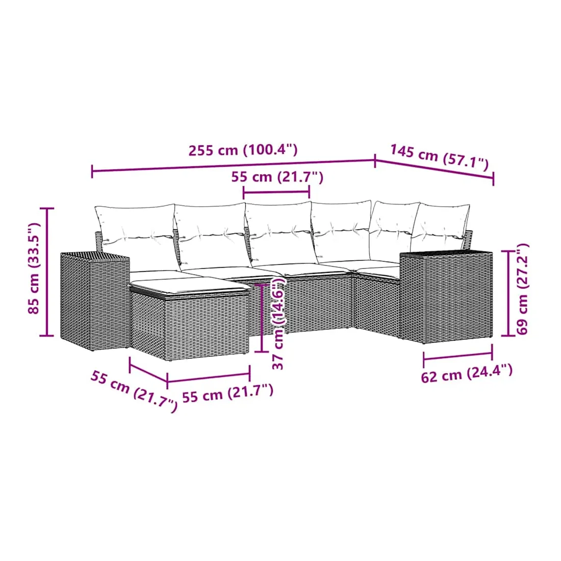 - Dimensions du coussin de dossier : 55 x 45 x 13 cm (L x l x é)