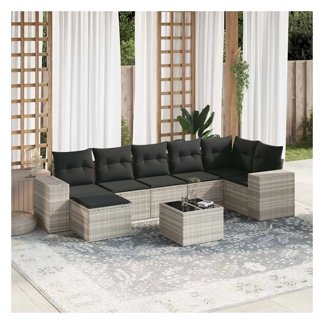 Cet ensemble de canapés de jardin est le complément parfait de votre arrière-cour, terrasse ou patio, offrant un espace confortable et accueillant pour discuter avec la famille et les amis ou simplement se détendre et profiter de l'extérieur. Matériau durable : la résine tressée, également connue sous le nom de poly rotin, est un matériau synthétique solide et nécessitant peu d'entretien qui ressemble au rotin naturel. Il est léger, facile à nettoyer et couramment utilisé pour les meubles d'extérieur en raison de sa durabilité et de ses propriétés de résistance aux intempéries.Expérience d'assise confortable : ce mobilier d'extérieur, doté de coussins épais, offre une expérience d'assise confortable.Dessus en verre : le dessus de la table d'extérieur est fabriqué en verre trempé solide et durable, ce qui le rend facile à nettoyer avec un chiffon humide et ajoute une touche d'élégance à votre espace extérieur.Housse amovible et lavable : ces coussins de siège sont dotés de housses amovibles pour un lavage et un entretien faciles.Conception modulaire : cet ensemble de meubles d'extérieur a une conception modulaire, ce qui le rend complètement flexible et facile à déplacer, afin que vous puissiez créer un agencement de meubles d'extérieur personnalisé. Bon à savoir :Pour que vos meubles d'extérieur restent beaux, nous vous recommandons de les protéger avec une housse imperméable.