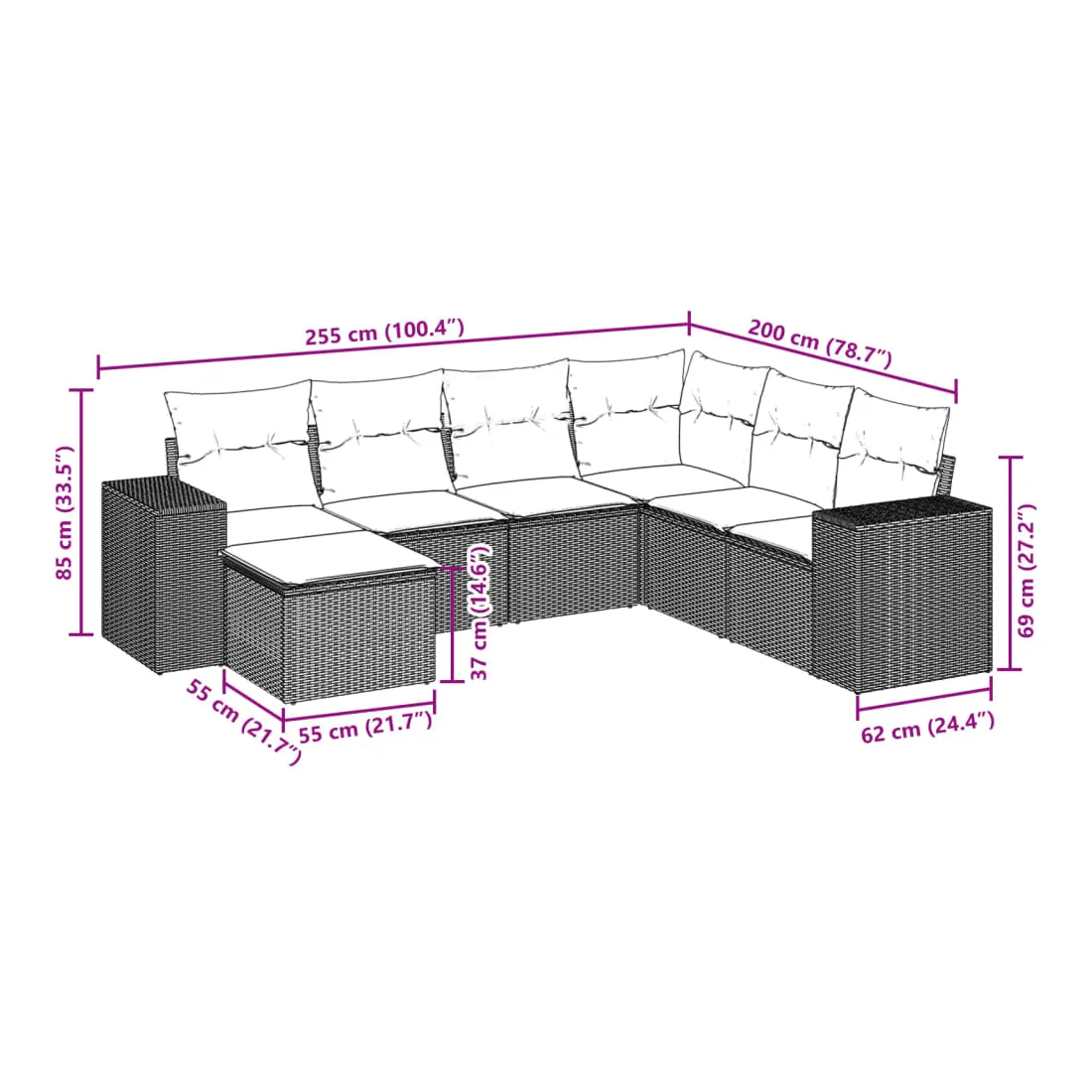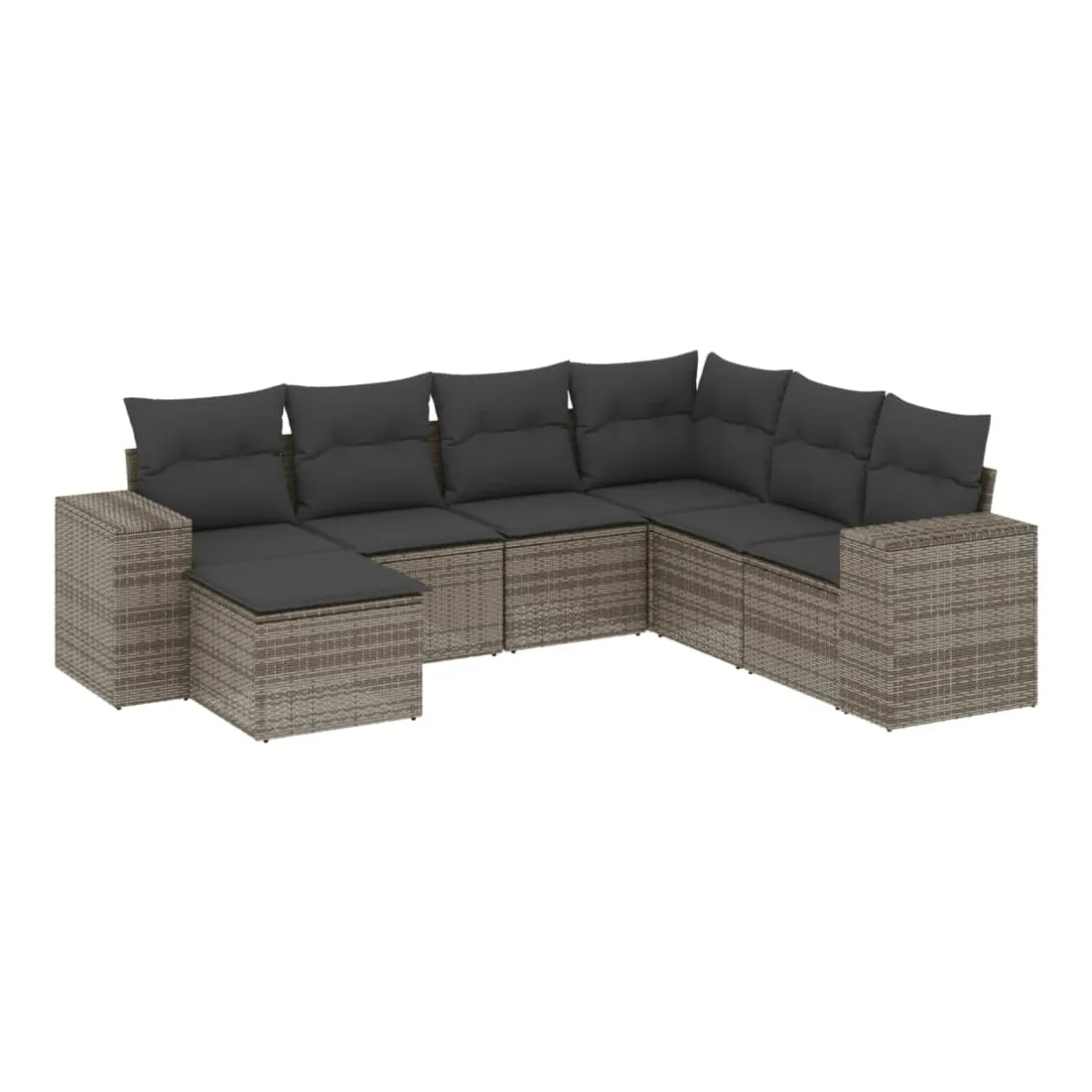 Salon de jardin avec coussins 7 pcs gris résine tressée