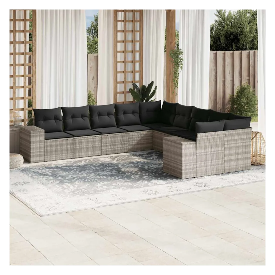 Cet ensemble de canapés de jardin est le complément parfait de votre arrière-cour, terrasse ou patio, offrant un espace confortable et accueillant pour discuter avec la famille et les amis ou simplement se détendre et profiter de l'extérieur. Matériau durable : la résine tressée, également connue sous le nom de poly rotin, est un matériau synthétique solide et nécessitant peu d'entretien qui ressemble au rotin naturel. Il est léger, facile à nettoyer et couramment utilisé pour les meubles d'extérieur en raison de sa durabilité et de ses propriétés de résistance aux intempéries.Expérience d'assise confortable : ce mobilier d'extérieur, doté de coussins épais, offre une expérience d'assise confortable.Housse amovible et lavable : ces coussins de siège sont dotés de housses amovibles pour un lavage et un entretien faciles.Conception modulaire : cet ensemble de meubles d'extérieur a une conception modulaire, ce qui le rend complètement flexible et facile à déplacer, afin que vous puissiez créer un agencement de meubles d'extérieur personnalisé. Bon à savoir :Pour que vos meubles d'extérieur restent beaux, nous vous recommandons de les protéger avec une housse imperméable.