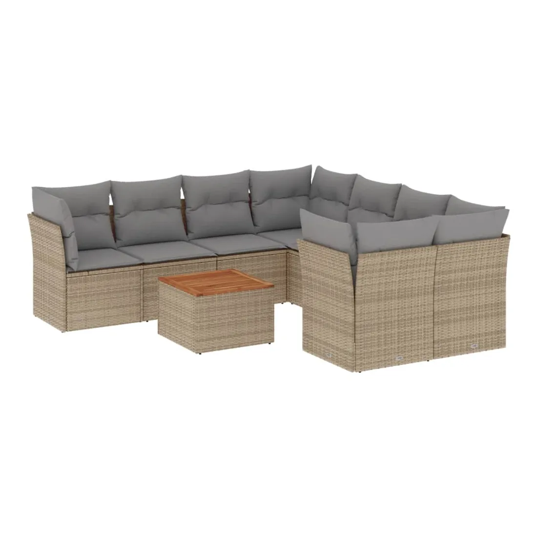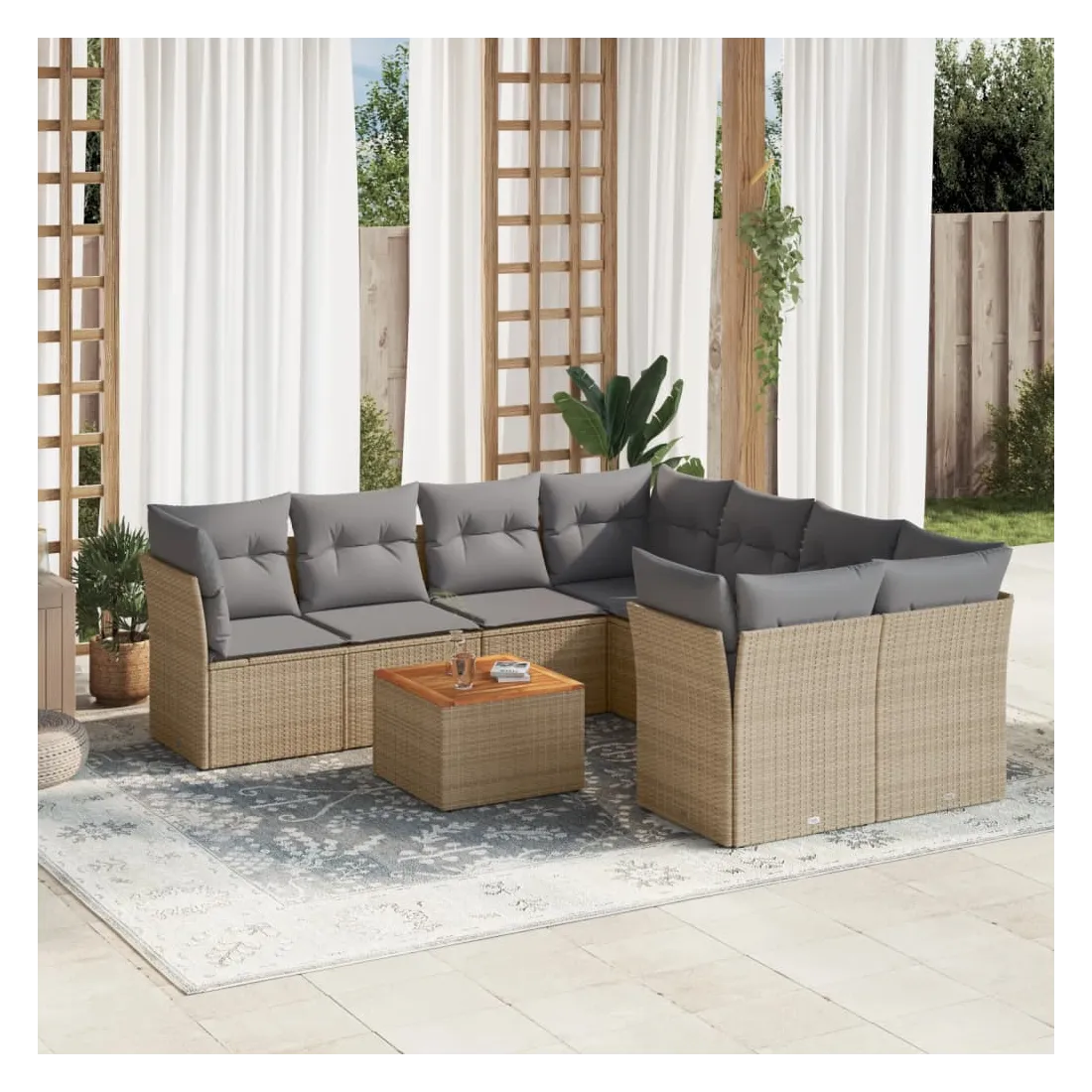 Salon de jardin avec coussins 9 pcs beige résine tressée