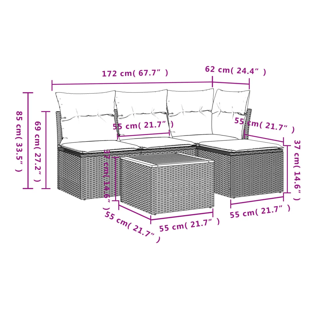 - Dimensions : 55 x 55 x 37 cm (L x l x H)