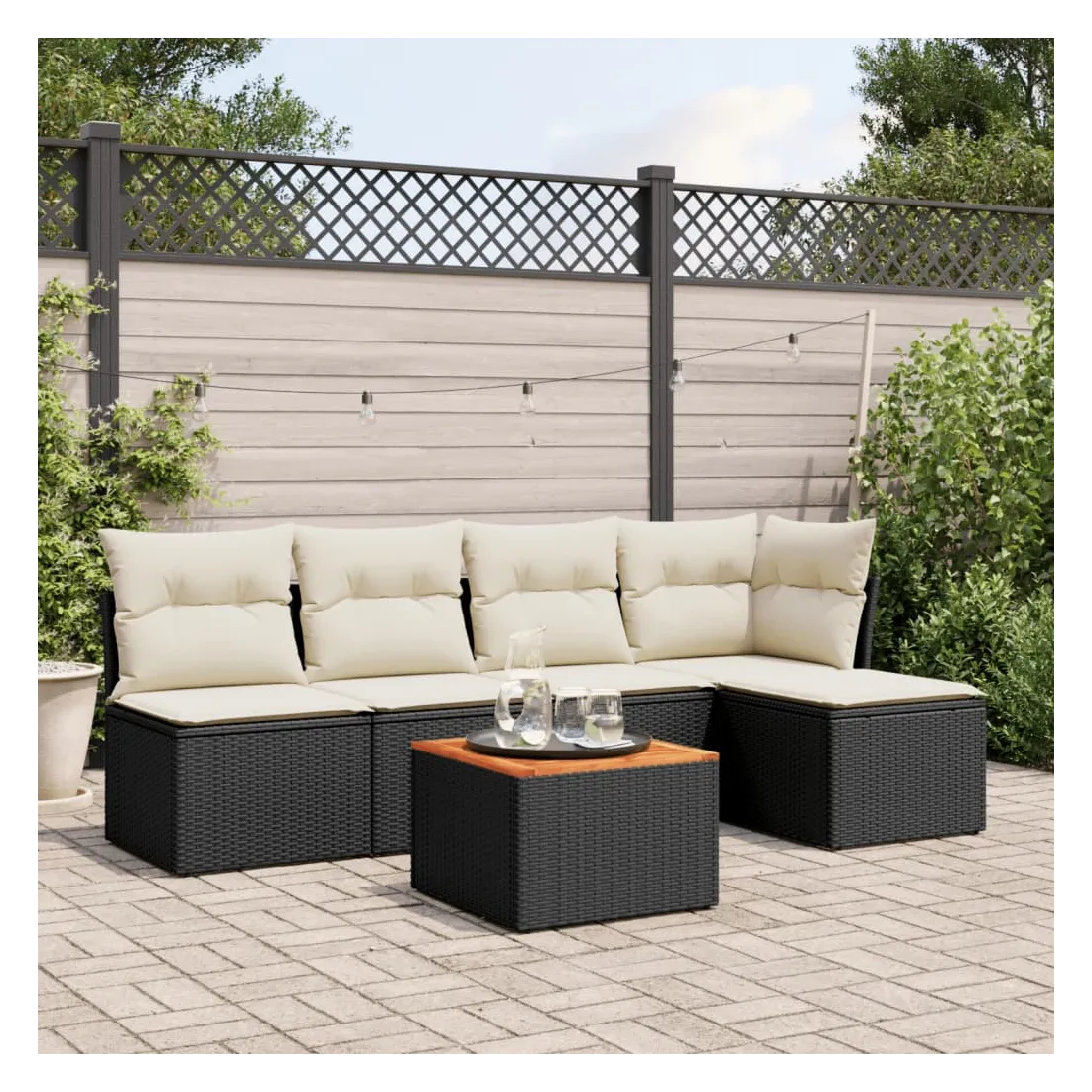 Cet ensemble de canapés de jardin est le complément parfait de votre arrière-cour, terrasse ou patio, offrant un espace confortable et accueillant pour discuter avec la famille et les amis ou simplement se détendre et profiter de l'extérieur. Matériau durable : la résine tressée, également connue sous le nom de poly rotin, est un matériau synthétique solide et nécessitant peu d'entretien qui ressemble au rotin naturel. Il est léger, facile à nettoyer et couramment utilisé pour les meubles d'extérieur en raison de sa durabilité et de ses propriétés de résistance aux intempéries.Expérience d'assise confortable : ce mobilier d'extérieur, doté de coussins épais, offre une expérience d'assise confortable.Dessus stable et facile à nettoyer : cette table de jardin a un dessus en bois d'acacia robuste, durable et facile à nettoyer avec un chiffon humide.Housse amovible et lavable : ces coussins de siège sont dotés de housses amovibles pour un lavage et un entretien faciles.Conception modulaire : cet ensemble de meubles d'extérieur a une conception modulaire, ce qui le rend complètement flexible et facile à déplacer, afin que vous puissiez créer un agencement de meubles d'extérieur personnalisé. Bon à savoir :Pour que vos meubles d'extérieur restent beaux, nous vous recommandons de les protéger avec une housse imperméable.