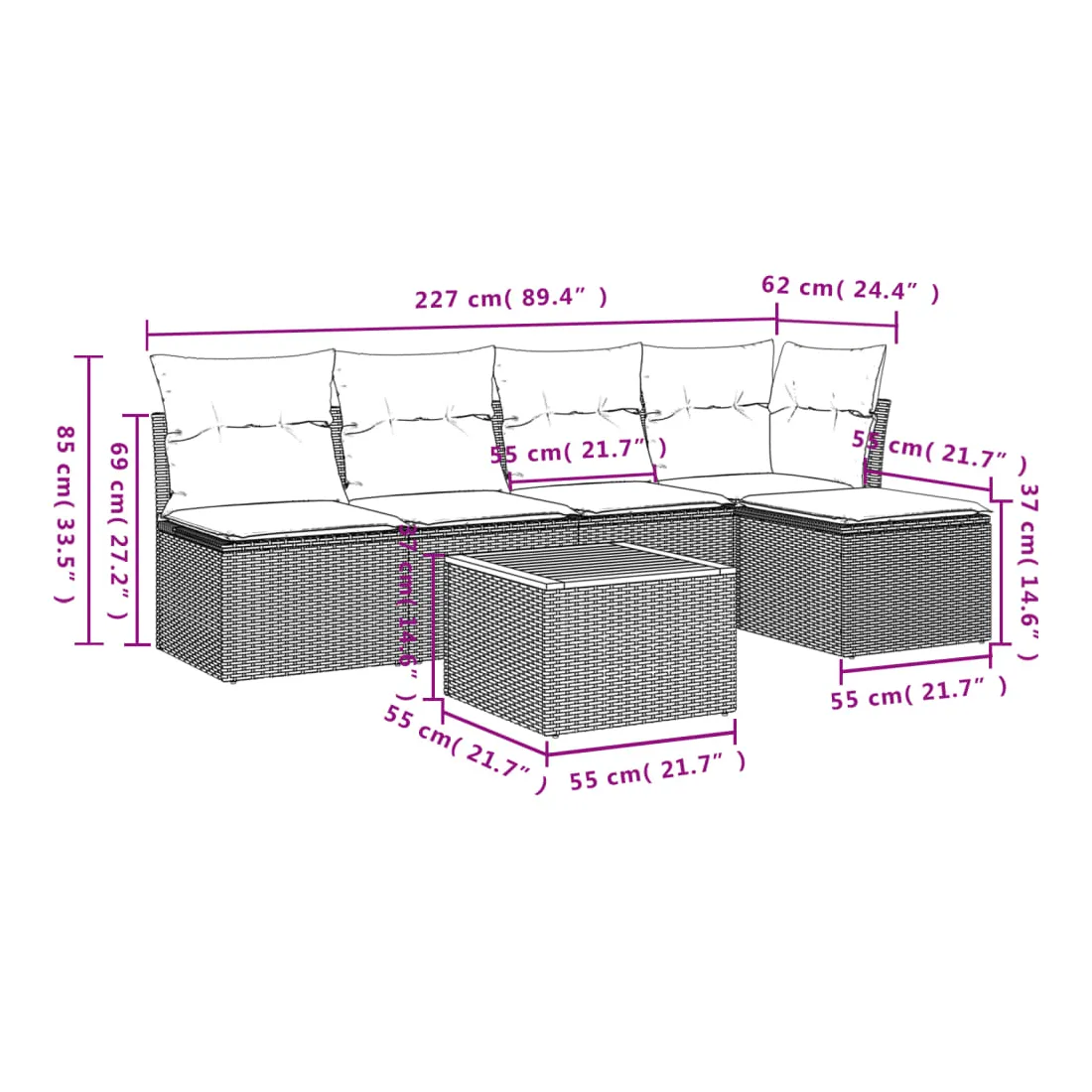 - Dimensions : 55 x 55 x 37 cm (L x l x H)