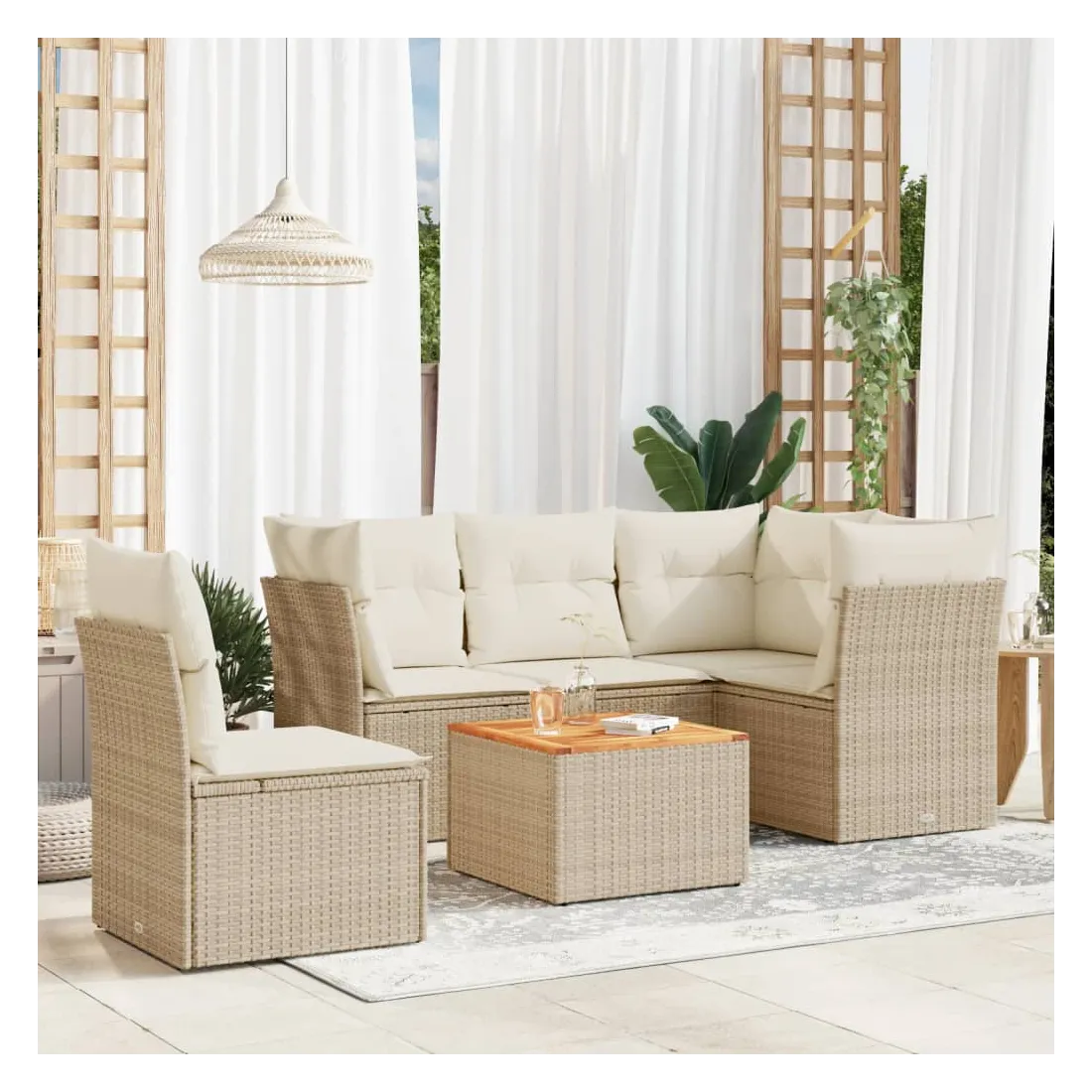 Cet ensemble de canapés de jardin est le complément parfait de votre arrière-cour, terrasse ou patio, offrant un espace confortable et accueillant pour discuter avec la famille et les amis ou simplement se détendre et profiter de l'extérieur. Matériau durable : la résine tressée, également connue sous le nom de poly rotin, est un matériau synthétique solide et nécessitant peu d'entretien qui ressemble au rotin naturel. Il est léger, facile à nettoyer et couramment utilisé pour les meubles d'extérieur en raison de sa durabilité et de ses propriétés de résistance aux intempéries.Expérience d'assise confortable : ce mobilier d'extérieur, doté de coussins épais, offre une expérience d'assise confortable.Dessus stable et facile à nettoyer : cette table de jardin a un dessus en bois d'acacia robuste, durable et facile à nettoyer avec un chiffon humide.Housse amovible et lavable : ces coussins de siège sont dotés de housses amovibles pour un lavage et un entretien faciles.Conception modulaire : cet ensemble de meubles d'extérieur a une conception modulaire, ce qui le rend complètement flexible et facile à déplacer, afin que vous puissiez créer un agencement de meubles d'extérieur personnalisé. Bon à savoir :Pour que vos meubles d'extérieur restent beaux, nous vous recommandons de les protéger avec une housse imperméable.