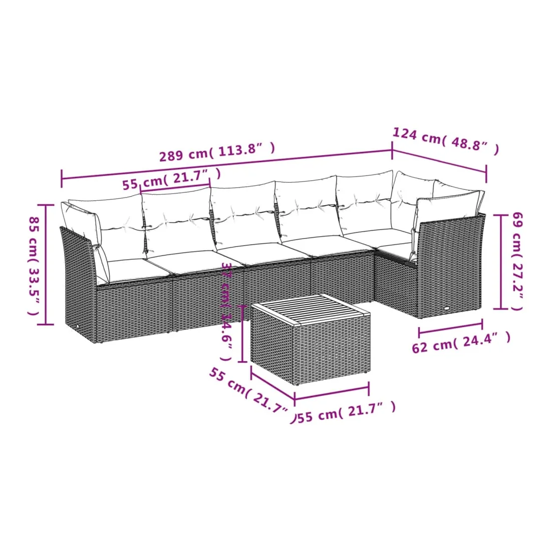 - Dimensions du coussin de siège : 55 x 55 x 3 cm (l x P x é)
