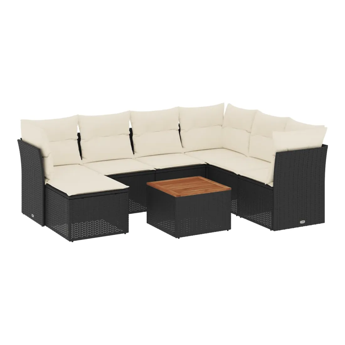 Salon de jardin 8 pcs avec coussins noir résine tressée