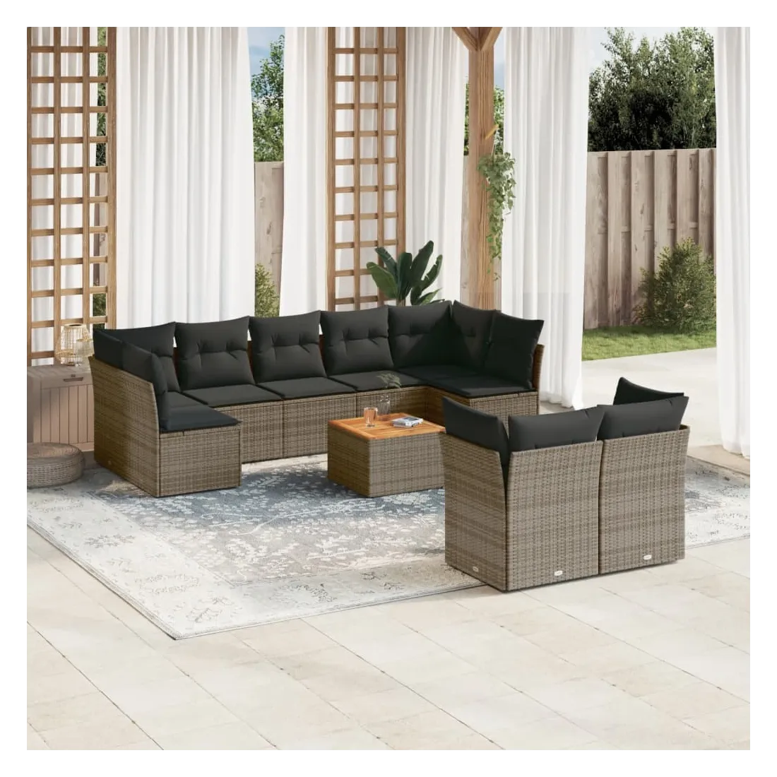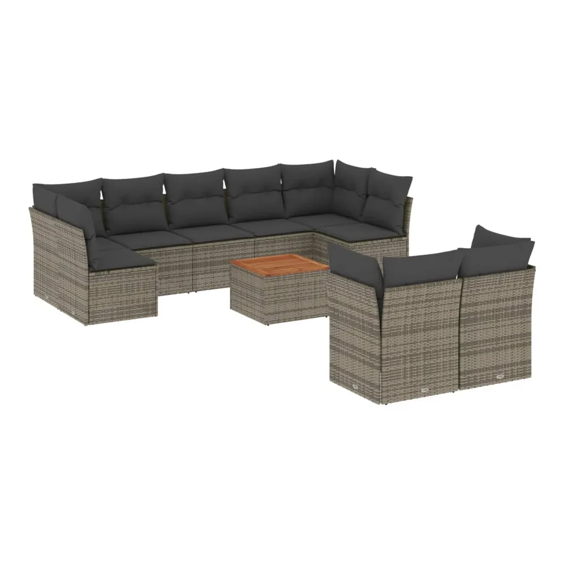Salon de jardin avec coussins 10 pcs gris résine tressée