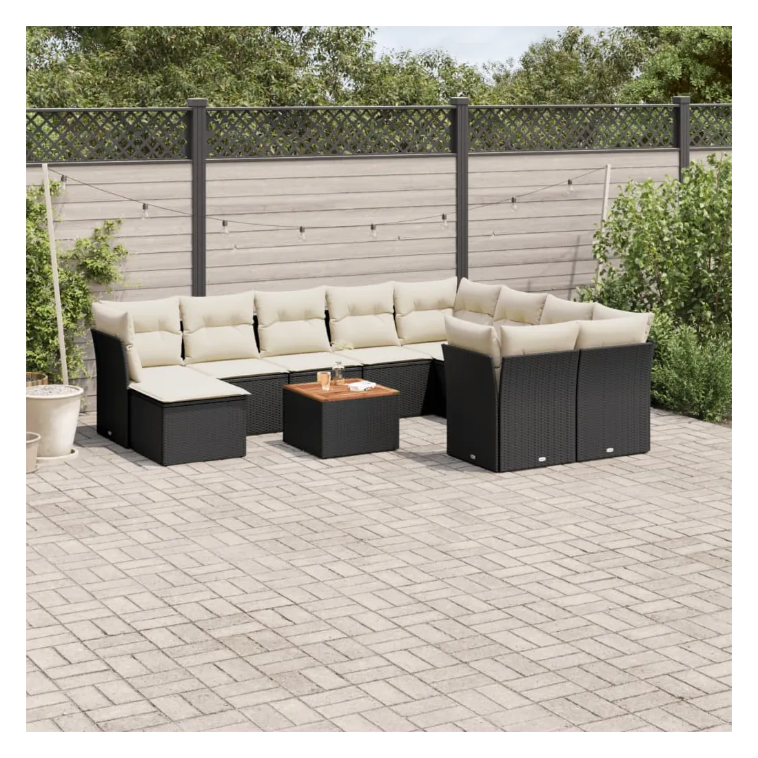 Cet ensemble de canapés de jardin est le complément parfait de votre arrière-cour, terrasse ou patio, offrant un espace confortable et accueillant pour discuter avec la famille et les amis ou simplement se détendre et profiter de l'extérieur. Matériau durable : la résine tressée, également connue sous le nom de poly rotin, est un matériau synthétique solide et nécessitant peu d'entretien qui ressemble au rotin naturel. Il est léger, facile à nettoyer et couramment utilisé pour les meubles d'extérieur en raison de sa durabilité et de ses propriétés de résistance aux intempéries.Expérience d'assise confortable : ce mobilier d'extérieur, doté de coussins épais, offre une expérience d'assise confortable.Dessus stable et facile à nettoyer : cette table de jardin a un dessus en bois d'acacia robuste, durable et facile à nettoyer avec un chiffon humide.Housse amovible et lavable : ces coussins de siège sont dotés de housses amovibles pour un lavage et un entretien faciles.Conception modulaire : cet ensemble de meubles d'extérieur a une conception modulaire, ce qui le rend complètement flexible et facile à déplacer, afin que vous puissiez créer un agencement de meubles d'extérieur personnalisé. Bon à savoir :Pour que vos meubles d'extérieur restent beaux, nous vous recommandons de les protéger avec une housse imperméable.