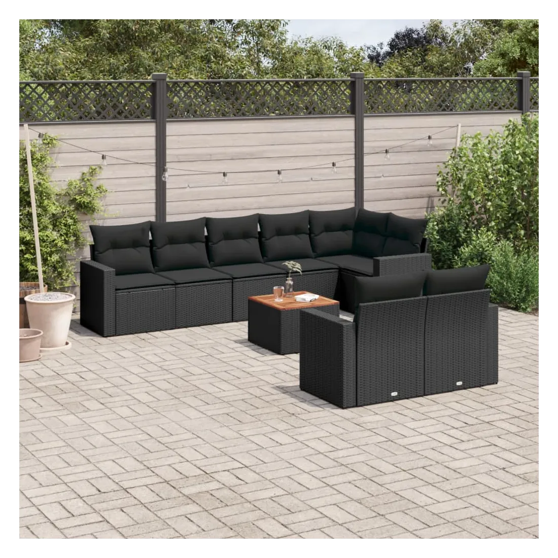 Cet ensemble de canapés de jardin est le complément parfait de votre arrière-cour, terrasse ou patio, offrant un espace confortable et accueillant pour discuter avec la famille et les amis ou simplement se détendre et profiter de l'extérieur. Matériau durable : la résine tressée, également connue sous le nom de poly rotin, est un matériau synthétique solide et nécessitant peu d'entretien qui ressemble au rotin naturel. Il est léger, facile à nettoyer et couramment utilisé pour les meubles d'extérieur en raison de sa durabilité et de ses propriétés de résistance aux intempéries.Expérience d'assise confortable : ce mobilier d'extérieur, doté de coussins épais, offre une expérience d'assise confortable.Dessus stable et facile à nettoyer : cette table de jardin a un dessus en bois d'acacia robuste, durable et facile à nettoyer avec un chiffon humide.Housse amovible et lavable : ces coussins de siège sont dotés de housses amovibles pour un lavage et un entretien faciles.Conception modulaire : cet ensemble de meubles d'extérieur a une conception modulaire, ce qui le rend complètement flexible et facile à déplacer, afin que vous puissiez créer un agencement de meubles d'extérieur personnalisé. Bon à savoir :Pour que vos meubles d'extérieur restent beaux, nous vous recommandons de les protéger avec une housse imperméable.