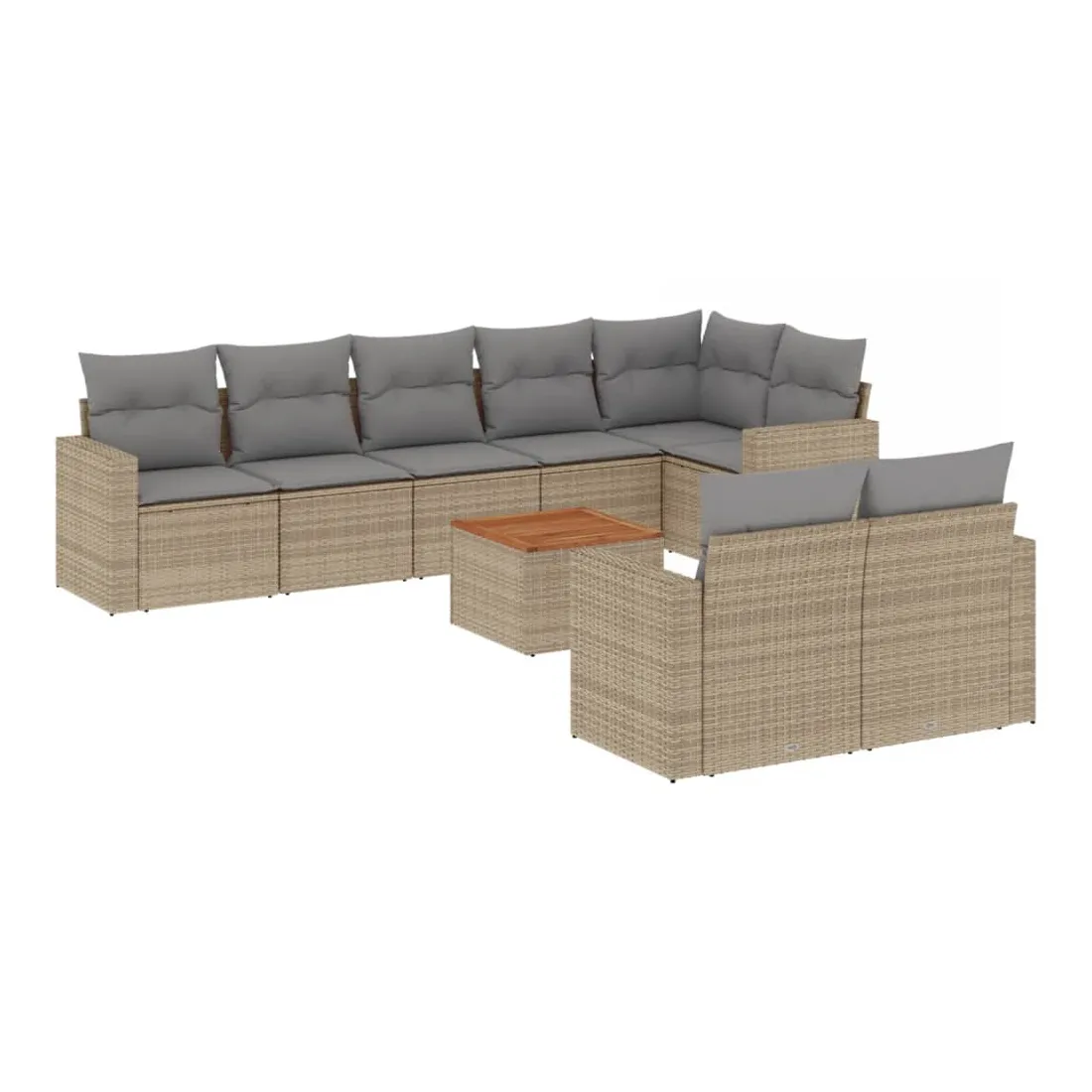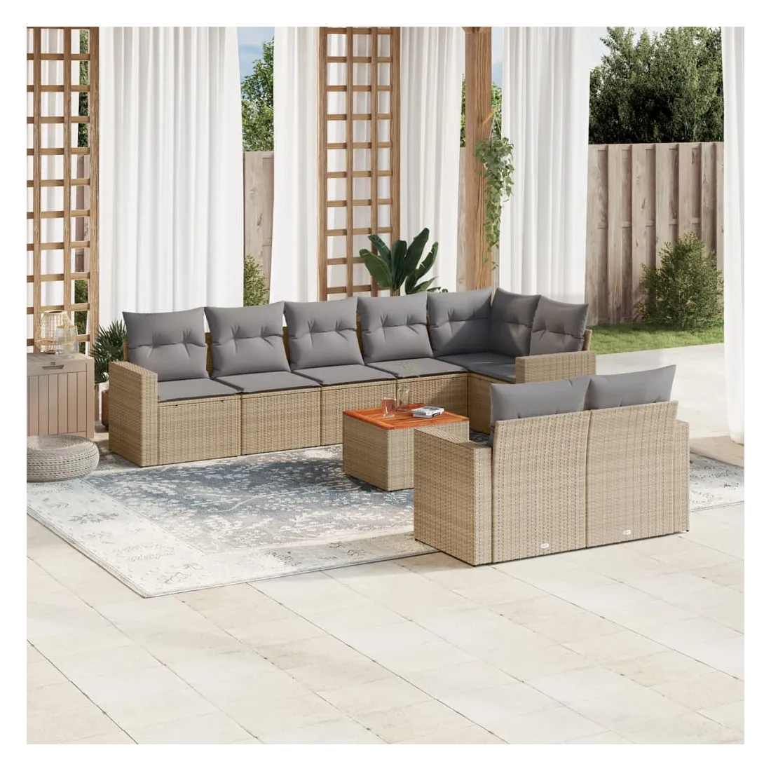 Cet ensemble de canapés de jardin est le complément parfait de votre arrière-cour, terrasse ou patio, offrant un espace confortable et accueillant pour discuter avec la famille et les amis ou simplement se détendre et profiter de l'extérieur. Matériau durable : la résine tressée, également connue sous le nom de poly rotin, est un matériau synthétique solide et nécessitant peu d'entretien qui ressemble au rotin naturel. Il est léger, facile à nettoyer et couramment utilisé pour les meubles d'extérieur en raison de sa durabilité et de ses propriétés de résistance aux intempéries.Expérience d'assise confortable : ce mobilier d'extérieur, doté de coussins épais, offre une expérience d'assise confortable.Dessus stable et facile à nettoyer : cette table de jardin a un dessus en bois d'acacia robuste, durable et facile à nettoyer avec un chiffon humide.Housse amovible et lavable : ces coussins de siège sont dotés de housses amovibles pour un lavage et un entretien faciles.Conception modulaire : cet ensemble de meubles d'extérieur a une conception modulaire, ce qui le rend complètement flexible et facile à déplacer, afin que vous puissiez créer un agencement de meubles d'extérieur personnalisé. Bon à savoir :Pour que vos meubles d'extérieur restent beaux, nous vous recommandons de les protéger avec une housse imperméable.