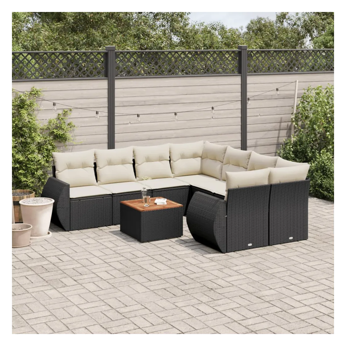 Cet ensemble de canapés de jardin est le complément parfait de votre arrière-cour, terrasse ou patio, offrant un espace confortable et accueillant pour discuter avec la famille et les amis ou simplement se détendre et profiter de l'extérieur. Matériau durable : la résine tressée, également connue sous le nom de poly rotin, est un matériau synthétique solide et nécessitant peu d'entretien qui ressemble au rotin naturel. Il est léger, facile à nettoyer et couramment utilisé pour les meubles d'extérieur en raison de sa durabilité et de ses propriétés de résistance aux intempéries.Dessus stable et facile à nettoyer : cette table de jardin a un dessus en bois d'acacia robuste, durable et facile à nettoyer avec un chiffon humide. Expérience d'assise confortable : ce mobilier d'extérieur, doté de coussins épais, offre une expérience d'assise confortable.Housse amovible et lavable : ces coussins de siège sont dotés de housses amovibles pour un lavage et un entretien faciles.Conception modulaire : cet ensemble de meubles d'extérieur a une conception modulaire, ce qui le rend complètement flexible et facile à déplacer, afin que vous puissiez créer un agencement de meubles d'extérieur personnalisé. Bon à savoir :Pour que vos meubles d'extérieur restent beaux, nous vous recommandons de les protéger avec une housse imperméable.