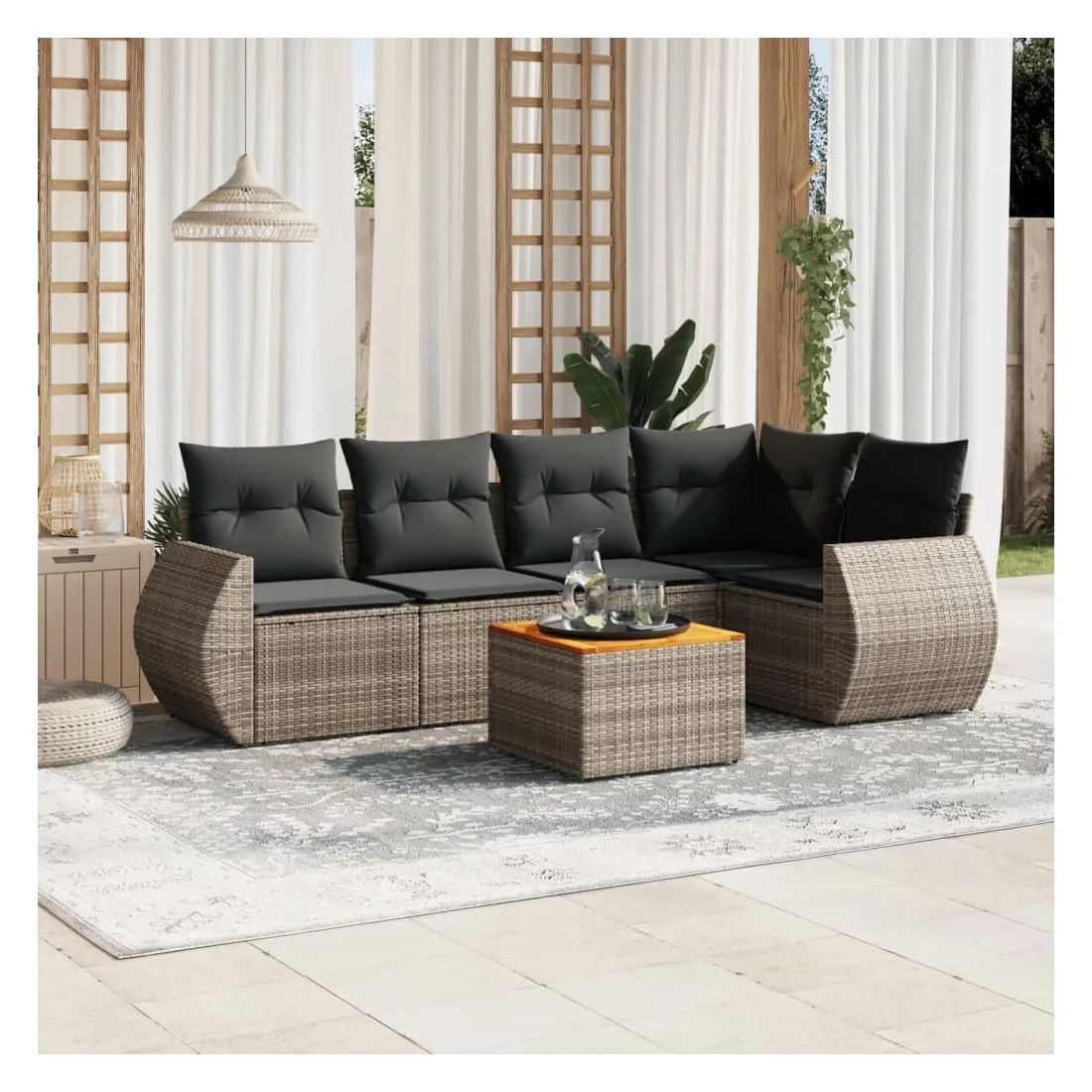 Cet ensemble de canapés de jardin est le complément parfait de votre arrière-cour, terrasse ou patio, offrant un espace confortable et accueillant pour discuter avec la famille et les amis ou simplement se détendre et profiter de l'extérieur. Matériau durable : la résine tressée, également connue sous le nom de poly rotin, est un matériau synthétique solide et nécessitant peu d'entretien qui ressemble au rotin naturel. Il est léger, facile à nettoyer et couramment utilisé pour les meubles d'extérieur en raison de sa durabilité et de ses propriétés de résistance aux intempéries.Dessus stable et facile à nettoyer : cette table de jardin a un dessus en bois d'acacia robuste, durable et facile à nettoyer avec un chiffon humide. Expérience d'assise confortable : ce mobilier d'extérieur, doté de coussins épais, offre une expérience d'assise confortable.Housse amovible et lavable : ces coussins de siège sont dotés de housses amovibles pour un lavage et un entretien faciles.Conception modulaire : cet ensemble de meubles d'extérieur a une conception modulaire, ce qui le rend complètement flexible et facile à déplacer, afin que vous puissiez créer un agencement de meubles d'extérieur personnalisé. Bon à savoir :Pour que vos meubles d'extérieur restent beaux, nous vous recommandons de les protéger avec une housse imperméable.