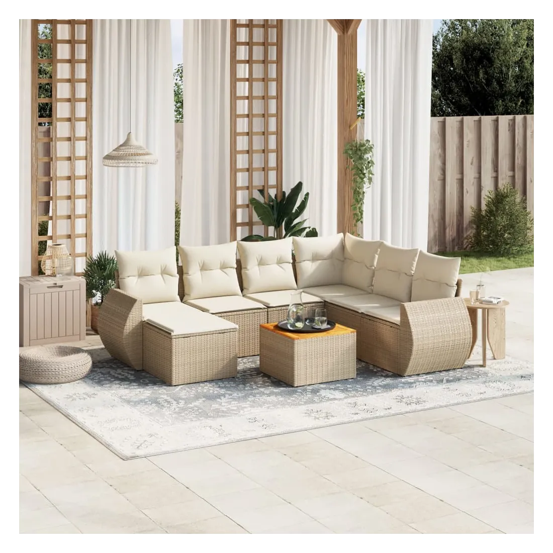 Cet ensemble de canapés de jardin est le complément parfait de votre arrière-cour, terrasse ou patio, offrant un espace confortable et accueillant pour discuter avec la famille et les amis ou simplement se détendre et profiter de l'extérieur. Matériau durable : la résine tressée, également connue sous le nom de poly rotin, est un matériau synthétique solide et nécessitant peu d'entretien qui ressemble au rotin naturel. Il est léger, facile à nettoyer et couramment utilisé pour les meubles d'extérieur en raison de sa durabilité et de ses propriétés de résistance aux intempéries.Dessus stable et facile à nettoyer : cette table de jardin a un dessus en bois d'acacia robuste, durable et facile à nettoyer avec un chiffon humide. Expérience d'assise confortable : ce mobilier d'extérieur, doté de coussins épais, offre une expérience d'assise confortable.Housse amovible et lavable : ces coussins de siège sont dotés de housses amovibles pour un lavage et un entretien faciles.Conception modulaire : cet ensemble de meubles d'extérieur a une conception modulaire, ce qui le rend complètement flexible et facile à déplacer, afin que vous puissiez créer un agencement de meubles d'extérieur personnalisé. Bon à savoir :Pour que vos meubles d'extérieur restent beaux, nous vous recommandons de les protéger avec une housse imperméable.