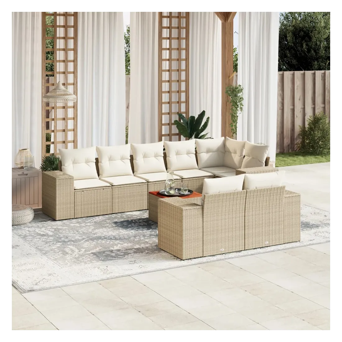 Salon de jardin avec coussins 9 pcs beige résine tressée
