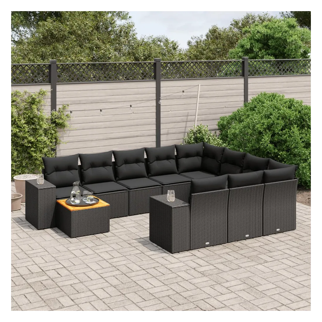 Salon de jardin 11 pcs avec coussins noir résine tressée