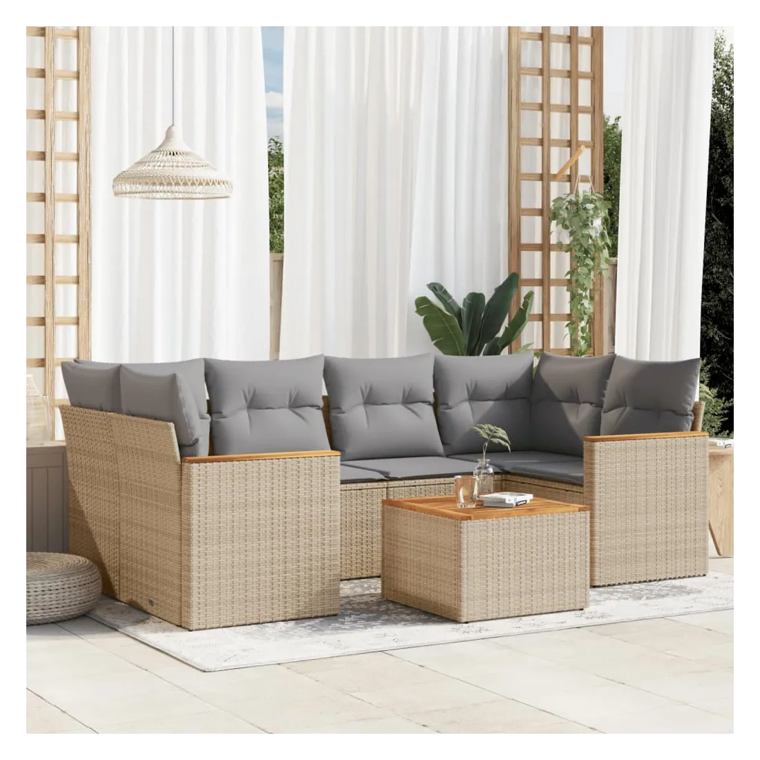 Cet ensemble de canapés de jardin est le complément parfait de votre arrière-cour, terrasse ou patio, offrant un espace confortable et accueillant pour discuter avec la famille et les amis ou simplement se détendre et profiter de l'extérieur. Matériau durable : la résine tressée, également connue sous le nom de poly rotin, est un matériau synthétique solide et nécessitant peu d'entretien qui ressemble au rotin naturel. Il est léger, facile à nettoyer et couramment utilisé pour les meubles d'extérieur en raison de sa durabilité et de ses propriétés de résistance aux intempéries.Dessus stable et facile à nettoyer : cette table de jardin a un dessus en bois d'acacia robuste, durable et facile à nettoyer avec un chiffon humide.Housse amovible et lavable : ces coussins de siège sont dotés de housses amovibles pour un lavage et un entretien faciles.Cadre robuste et stable : le cadre en acier enduit de poudre assure la solidité et la stabilité du meuble de jardin pour une utilisation quotidienne à l'extérieur.Conception modulaire : cet ensemble de meubles d'extérieur a une conception modulaire, ce qui le rend complètement flexible et facile à déplacer, afin que vous puissiez créer un agencement de meubles d'extérieur personnalisé. Bon à savoir :Pour que vos meubles d'extérieur restent beaux, nous vous recommandons de les protéger avec une housse imperméable.