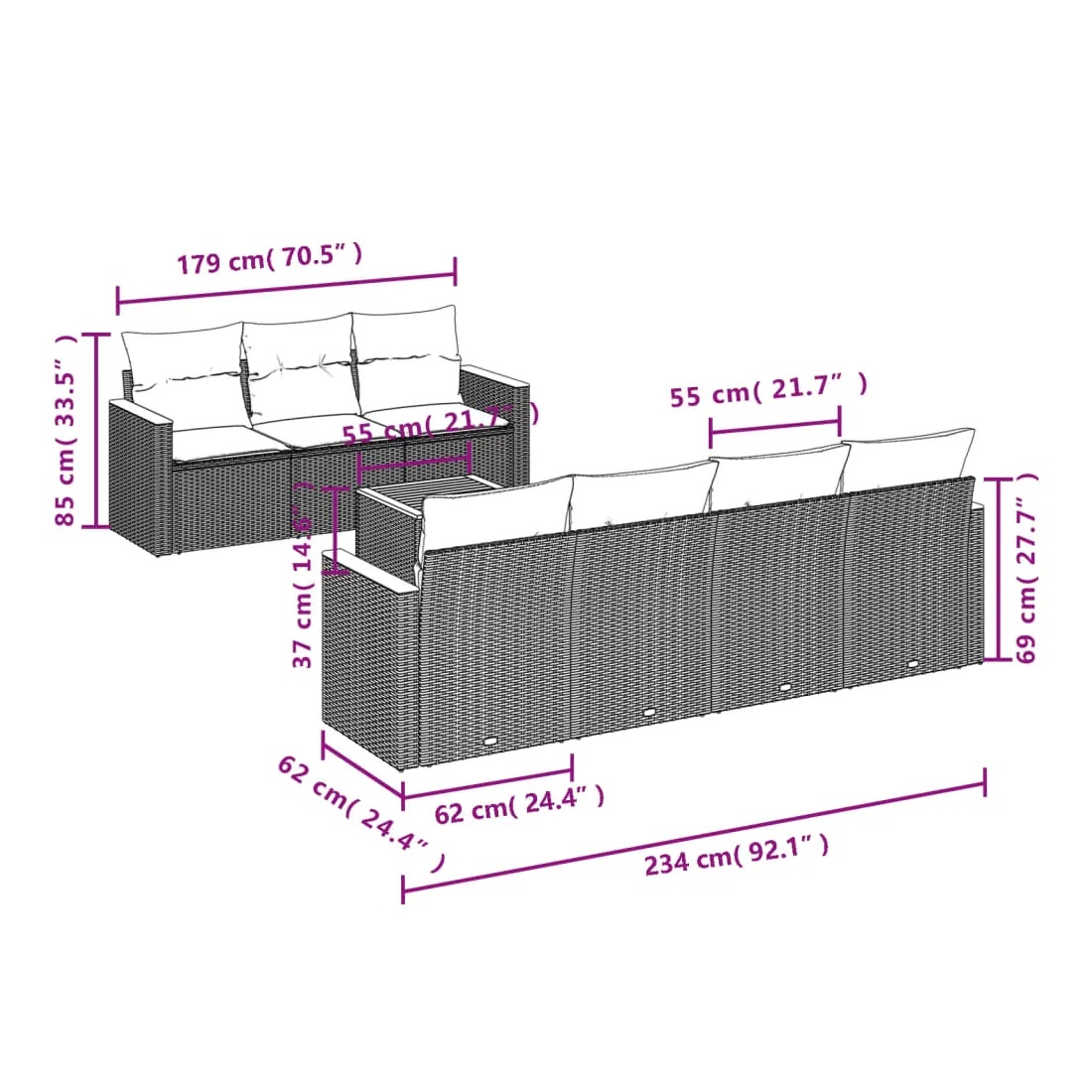 Cet ensemble de canapés de jardin est le complément parfait de votre arrière-cour, terrasse ou patio, offrant un espace confortable et accueillant pour discuter avec la famille et les amis ou simplement se détendre et profiter de l'extérieur. Matériau durable : la résine tressée, également connue sous le nom de poly rotin, est un matériau synthétique solide et nécessitant peu d'entretien qui ressemble au rotin naturel. Il est léger, facile à nettoyer et couramment utilisé pour les meubles d'extérieur en raison de sa durabilité et de ses propriétés de résistance aux intempéries.Dessus stable et facile à nettoyer : cette table de jardin a un dessus en bois d'acacia robuste, durable et facile à nettoyer avec un chiffon humide.Housse amovible et lavable : ces coussins de siège sont dotés de housses amovibles pour un lavage et un entretien faciles.Cadre robuste et stable : le cadre en acier enduit de poudre assure la solidité et la stabilité du meuble de jardin pour une utilisation quotidienne à l'extérieur.Conception modulaire : cet ensemble de meubles d'extérieur a une conception modulaire, ce qui le rend complètement flexible et facile à déplacer, afin que vous puissiez créer un agencement de meubles d'extérieur personnalisé. Bon à savoir :Pour que vos meubles d'extérieur restent beaux, nous vous recommandons de les protéger avec une housse imperméable.