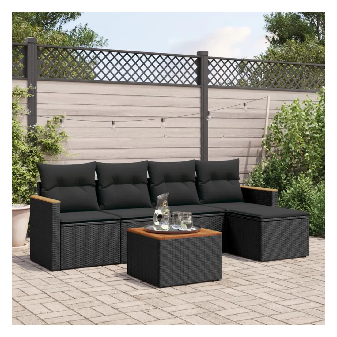 Cet ensemble de canapés de jardin est le complément parfait de votre arrière-cour, terrasse ou patio, offrant un espace confortable et accueillant pour discuter avec la famille et les amis ou simplement se détendre et profiter de l'extérieur. Matériau durable : la résine tressée, également connue sous le nom de poly rotin, est un matériau synthétique solide et nécessitant peu d'entretien qui ressemble au rotin naturel. Il est léger, facile à nettoyer et couramment utilisé pour les meubles d'extérieur en raison de sa durabilité et de ses propriétés de résistance aux intempéries.Dessus stable et facile à nettoyer : cette table de jardin a un dessus en bois d'acacia robuste, durable et facile à nettoyer avec un chiffon humide.Housse amovible et lavable : ces coussins de siège sont dotés de housses amovibles pour un lavage et un entretien faciles.Cadre robuste et stable : le cadre en acier enduit de poudre assure la solidité et la stabilité du meuble de jardin pour une utilisation quotidienne à l'extérieur.Conception modulaire : cet ensemble de meubles d'extérieur a une conception modulaire, ce qui le rend complètement flexible et facile à déplacer, afin que vous puissiez créer un agencement de meubles d'extérieur personnalisé. Bon à savoir :Pour que vos meubles d'extérieur restent beaux, nous vous recommandons de les protéger avec une housse imperméable.