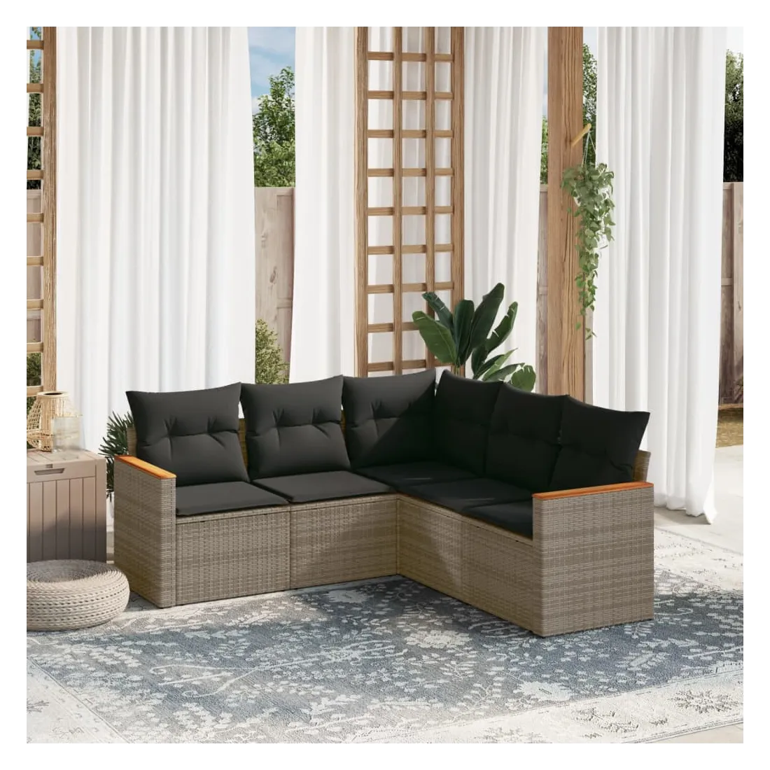 Cet ensemble de canapés de jardin est le complément parfait de votre arrière-cour, terrasse ou patio, offrant un espace confortable et accueillant pour discuter avec la famille et les amis ou simplement se détendre et profiter de l'extérieur. Matériau durable : la résine tressée, également connue sous le nom de poly rotin, est un matériau synthétique solide et nécessitant peu d'entretien qui ressemble au rotin naturel. Il est léger, facile à nettoyer et couramment utilisé pour les meubles d'extérieur en raison de sa durabilité et de ses propriétés de résistance aux intempéries.Housse amovible et lavable : ces coussins de siège sont dotés de housses amovibles pour un lavage et un entretien faciles.Cadre robuste et stable : le cadre en acier enduit de poudre assure la solidité et la stabilité du meuble de jardin pour une utilisation quotidienne à l'extérieur.Conception modulaire : cet ensemble de meubles d'extérieur a une conception modulaire, ce qui le rend complètement flexible et facile à déplacer, afin que vous puissiez créer un agencement de meubles d'extérieur personnalisé. Bon à savoir :Pour que vos meubles d'extérieur restent beaux, nous vous recommandons de les protéger avec une housse imperméable.