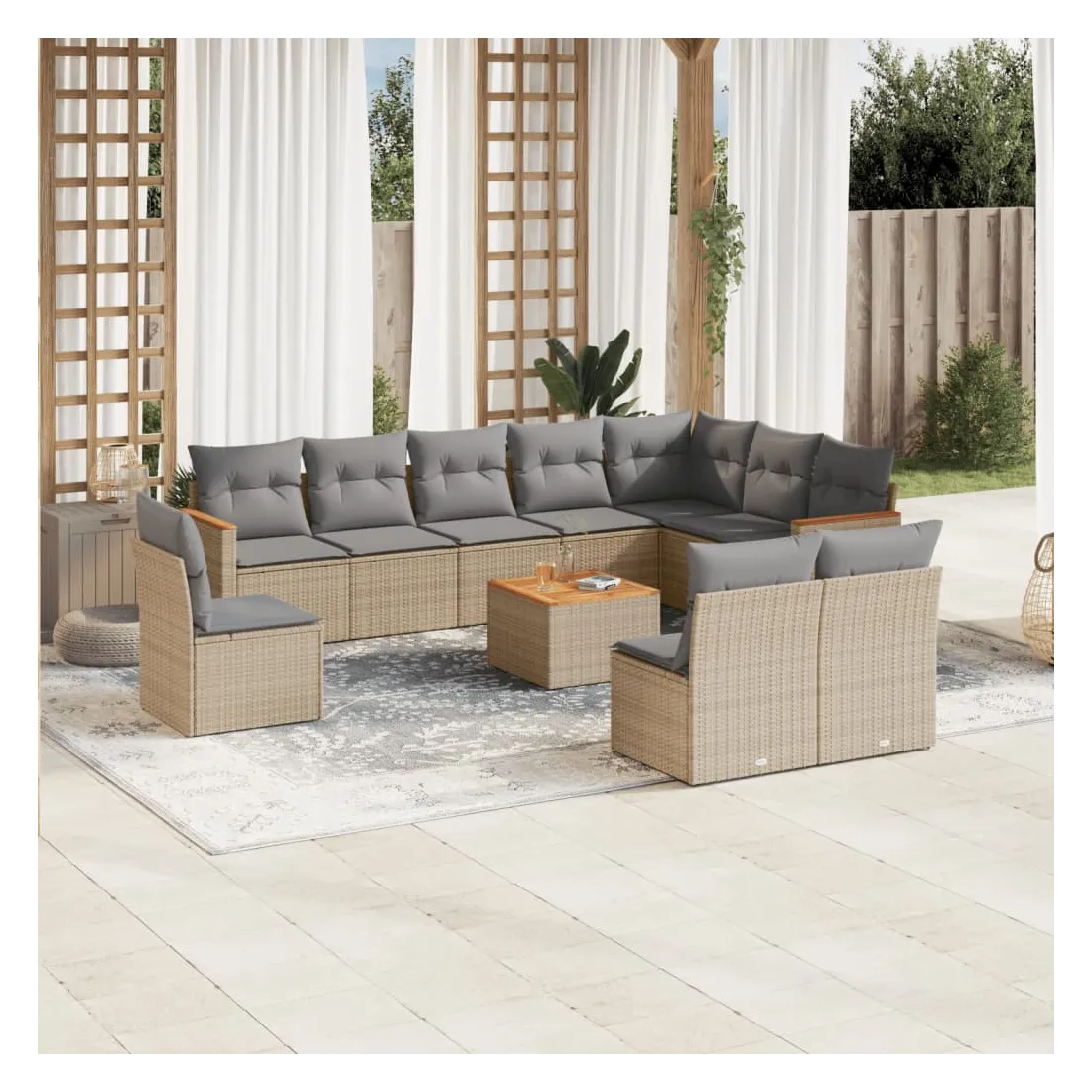 Cet ensemble de canapés de jardin est le complément parfait de votre arrière-cour, terrasse ou patio, offrant un espace confortable et accueillant pour discuter avec la famille et les amis ou simplement se détendre et profiter de l'extérieur. Matériau durable : la résine tressée, également connue sous le nom de poly rotin, est un matériau synthétique solide et nécessitant peu d'entretien qui ressemble au rotin naturel. Il est léger, facile à nettoyer et couramment utilisé pour les meubles d'extérieur en raison de sa durabilité et de ses propriétés de résistance aux intempéries.Dessus stable et facile à nettoyer : cette table de jardin a un dessus en bois d'acacia robuste, durable et facile à nettoyer avec un chiffon humide.Housse amovible et lavable : ces coussins de siège sont dotés de housses amovibles pour un lavage et un entretien faciles.Cadre robuste et stable : le cadre en acier enduit de poudre assure la solidité et la stabilité du meuble de jardin pour une utilisation quotidienne à l'extérieur.Conception modulaire : cet ensemble de meubles d'extérieur a une conception modulaire, ce qui le rend complètement flexible et facile à déplacer, afin que vous puissiez créer un agencement de meubles d'extérieur personnalisé. Bon à savoir :Pour que vos meubles d'extérieur restent beaux, nous vous recommandons de les protéger avec une housse imperméable.
