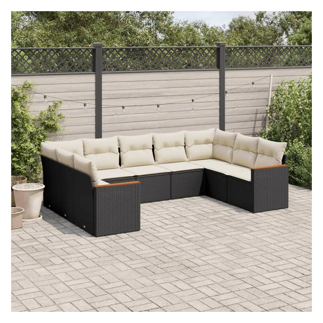 Salon de jardin 9 pcs avec coussins noir résine tressée