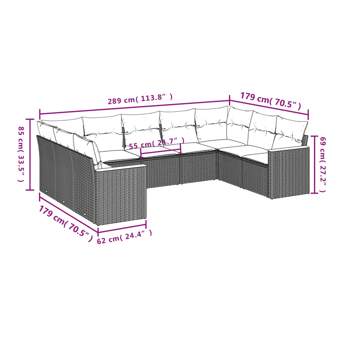 • 9 x coussin d'assise avec housse amovible et lavable