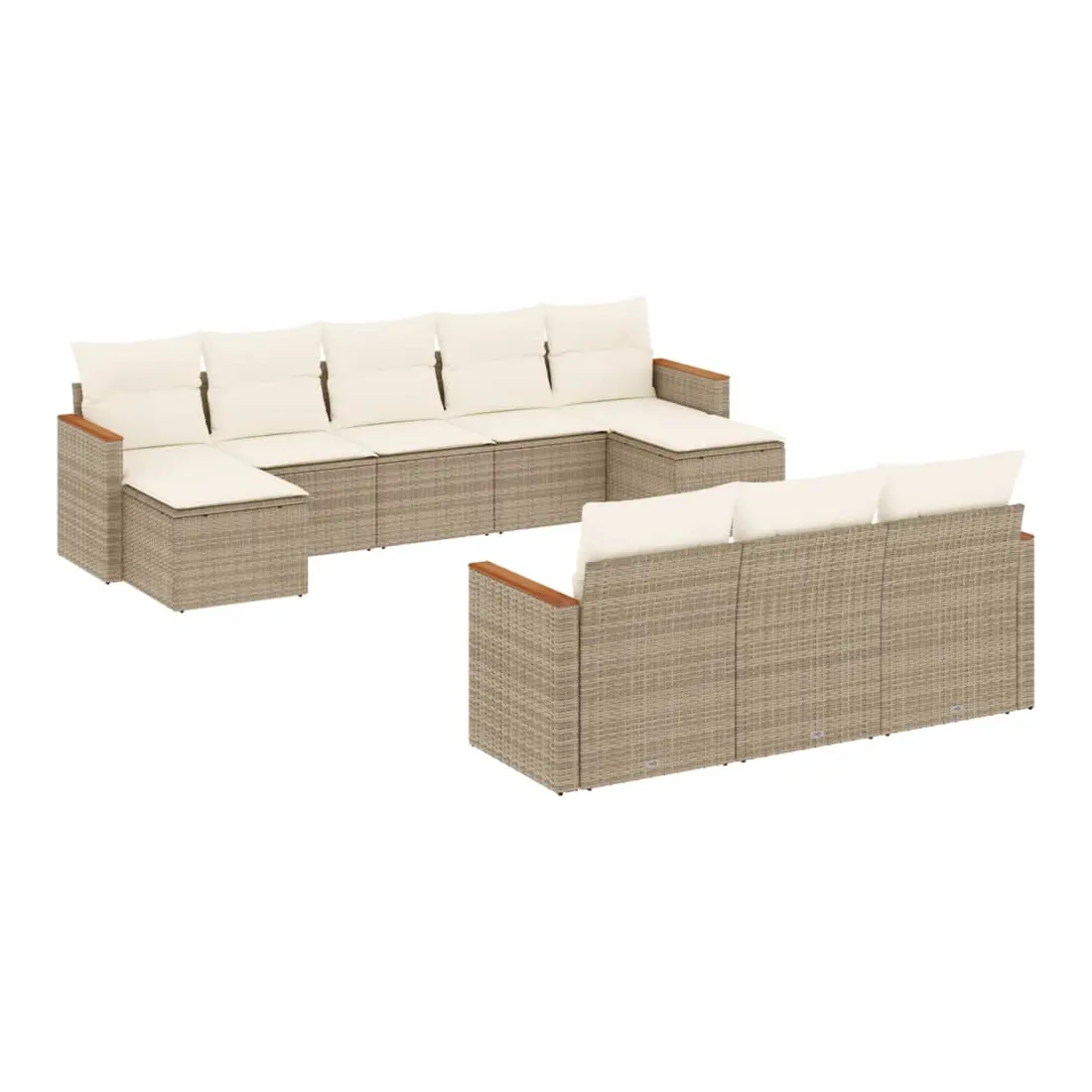 Cet ensemble de canapés de jardin est le complément parfait de votre arrière-cour, terrasse ou patio, offrant un espace confortable et accueillant pour discuter avec la famille et les amis ou simplement se détendre et profiter de l'extérieur. Matériau durable : la résine tressée, également connue sous le nom de poly rotin, est un matériau synthétique solide et nécessitant peu d'entretien qui ressemble au rotin naturel. Il est léger, facile à nettoyer et couramment utilisé pour les meubles d'extérieur en raison de sa durabilité et de ses propriétés de résistance aux intempéries.Housse amovible et lavable : ces coussins de siège sont dotés de housses amovibles pour un lavage et un entretien faciles.Cadre robuste et stable : le cadre en acier enduit de poudre assure la solidité et la stabilité du meuble de jardin pour une utilisation quotidienne à l'extérieur.Conception modulaire : cet ensemble de meubles d'extérieur a une conception modulaire, ce qui le rend complètement flexible et facile à déplacer, afin que vous puissiez créer un agencement de meubles d'extérieur personnalisé. Bon à savoir :Pour que vos meubles d'extérieur restent beaux, nous vous recommandons de les protéger avec une housse imperméable.