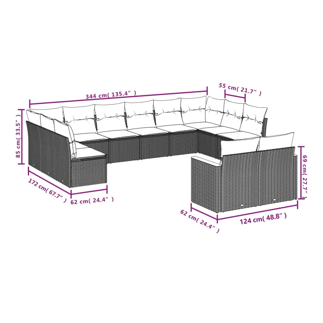 - 14 x coussin d’assise avec housse amovible et lavable