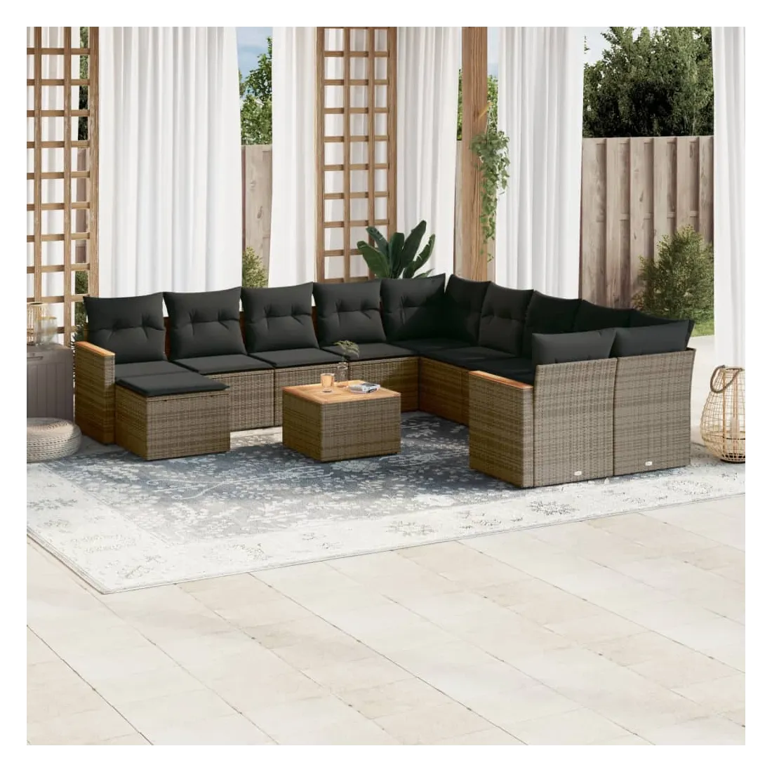 Cet ensemble de canapés de jardin est le complément parfait de votre arrière-cour, terrasse ou patio, offrant un espace confortable et accueillant pour discuter avec la famille et les amis ou simplement se détendre et profiter de l'extérieur. Matériau durable : la résine tressée, également connue sous le nom de poly rotin, est un matériau synthétique solide et nécessitant peu d'entretien qui ressemble au rotin naturel. Il est léger, facile à nettoyer et couramment utilisé pour les meubles d'extérieur en raison de sa durabilité et de ses propriétés de résistance aux intempéries.Dessus stable et facile à nettoyer : cette table de jardin a un dessus en bois d'acacia robuste, durable et facile à nettoyer avec un chiffon humide.Housse amovible et lavable : ces coussins de siège sont dotés de housses amovibles pour un lavage et un entretien faciles.Cadre robuste et stable : le cadre en acier enduit de poudre assure la solidité et la stabilité du meuble de jardin pour une utilisation quotidienne à l'extérieur.Conception modulaire : cet ensemble de meubles d'extérieur a une conception modulaire, ce qui le rend complètement flexible et facile à déplacer, afin que vous puissiez créer un agencement de meubles d'extérieur personnalisé. Bon à savoir :Pour que vos meubles d'extérieur restent beaux, nous vous recommandons de les protéger avec une housse imperméable.