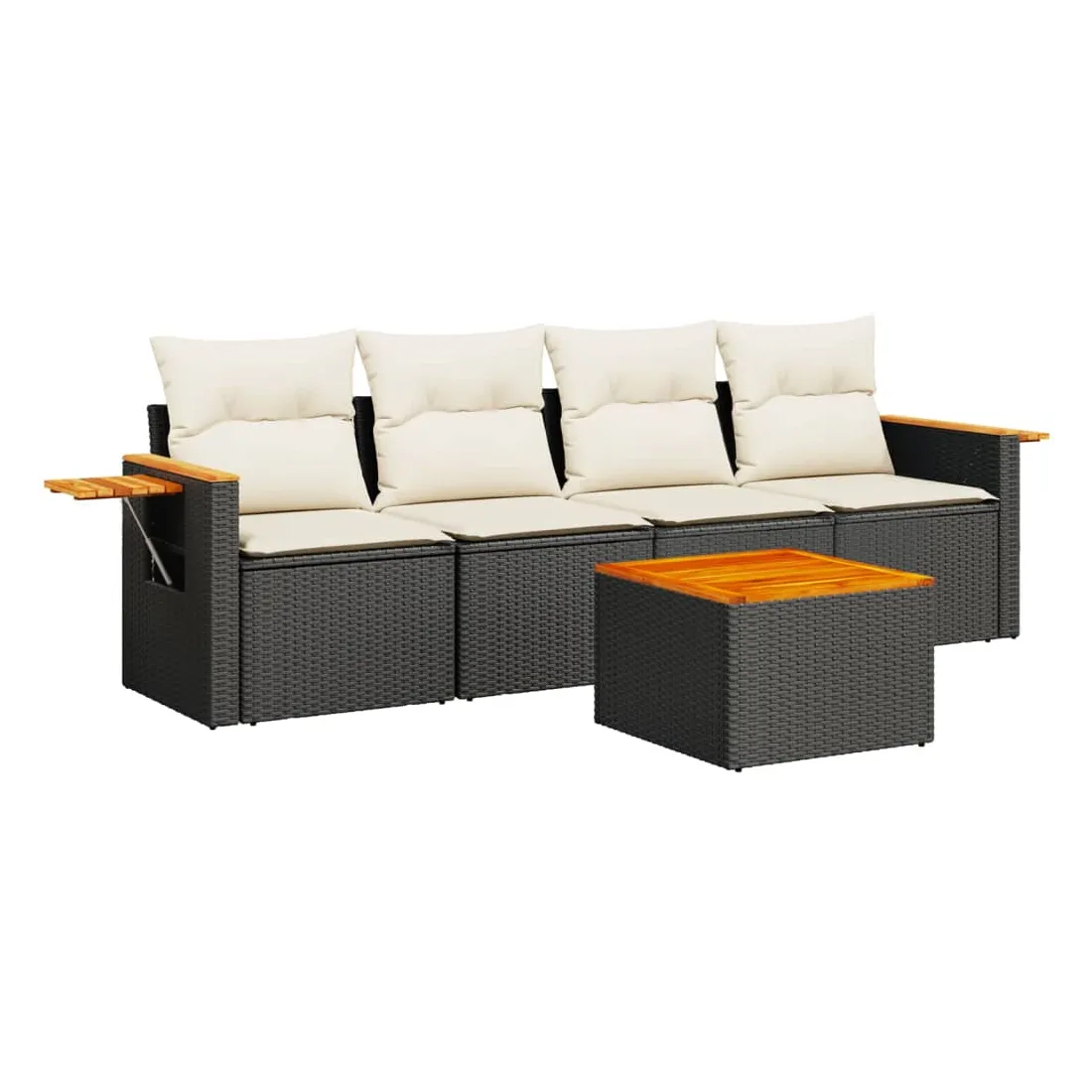 Cet ensemble de canapés de jardin est le complément parfait de votre arrière-cour, terrasse ou patio, offrant un espace confortable et accueillant pour discuter avec la famille et les amis ou simplement se détendre et profiter de l'extérieur. Matériau durable : la résine tressée, également connue sous le nom de poly rotin, est un matériau synthétique solide et nécessitant peu d'entretien qui ressemble au rotin naturel. Il est léger, facile à nettoyer et couramment utilisé pour les meubles d'extérieur en raison de sa durabilité et de ses propriétés de résistance aux intempéries.Dessus stable et facile à nettoyer : cette table de jardin a un dessus en bois d'acacia robuste, durable et facile à nettoyer avec un chiffon humide.Table d'appoint pratique : ce mobilier d'extérieur comprend une table d'appoint pliable avec un ressort à gaz sur les accoudoirs, offrant un endroit pratique pour garder vos essentiels à portée de main.Housse amovible et lavable : ces coussins de siège sont dotés de housses amovibles pour un lavage et un entretien faciles.Conception modulaire : cet ensemble de meubles d'extérieur a une conception modulaire, ce qui le rend complètement flexible et facile à déplacer, afin que vous puissiez créer un agencement de meubles d'extérieur personnalisé. Bon à savoir :Pour que vos meubles d'extérieur restent beaux, nous vous recommandons de les protéger avec une housse imperméable.