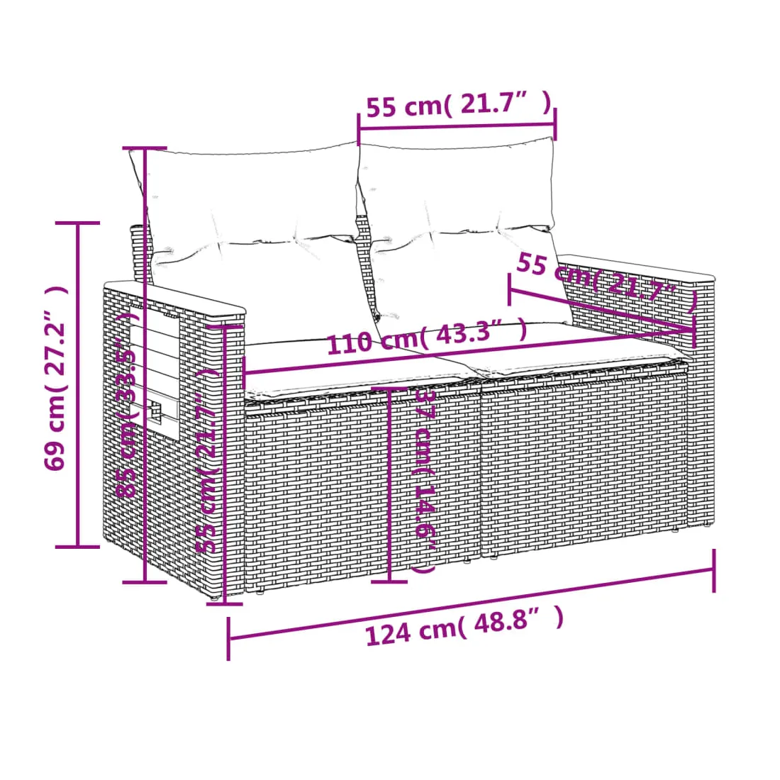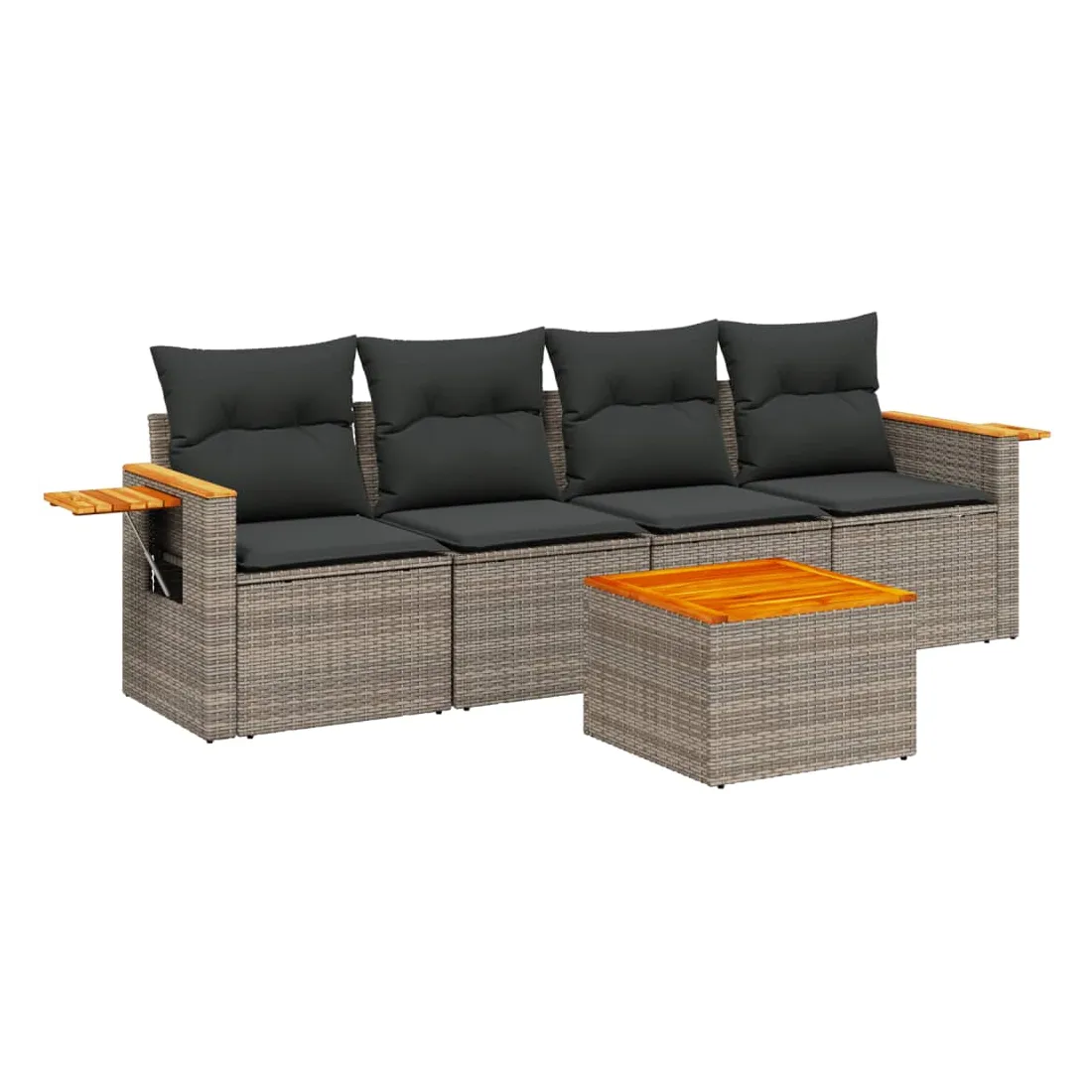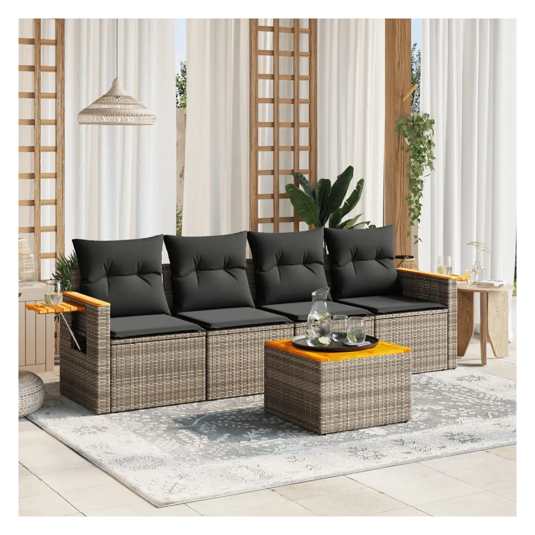 Cet ensemble de canapés de jardin est le complément parfait de votre arrière-cour, terrasse ou patio, offrant un espace confortable et accueillant pour discuter avec la famille et les amis ou simplement se détendre et profiter de l'extérieur. Matériau durable : la résine tressée, également connue sous le nom de poly rotin, est un matériau synthétique solide et nécessitant peu d'entretien qui ressemble au rotin naturel. Il est léger, facile à nettoyer et couramment utilisé pour les meubles d'extérieur en raison de sa durabilité et de ses propriétés de résistance aux intempéries.Dessus stable et facile à nettoyer : cette table de jardin a un dessus en bois d'acacia robuste, durable et facile à nettoyer avec un chiffon humide.Table d'appoint pratique : ce mobilier d'extérieur comprend une table d'appoint pliable avec un ressort à gaz sur les accoudoirs, offrant un endroit pratique pour garder vos essentiels à portée de main.Housse amovible et lavable : ces coussins de siège sont dotés de housses amovibles pour un lavage et un entretien faciles.Conception modulaire : cet ensemble de meubles d'extérieur a une conception modulaire, ce qui le rend complètement flexible et facile à déplacer, afin que vous puissiez créer un agencement de meubles d'extérieur personnalisé. Bon à savoir :Pour que vos meubles d'extérieur restent beaux, nous vous recommandons de les protéger avec une housse imperméable.