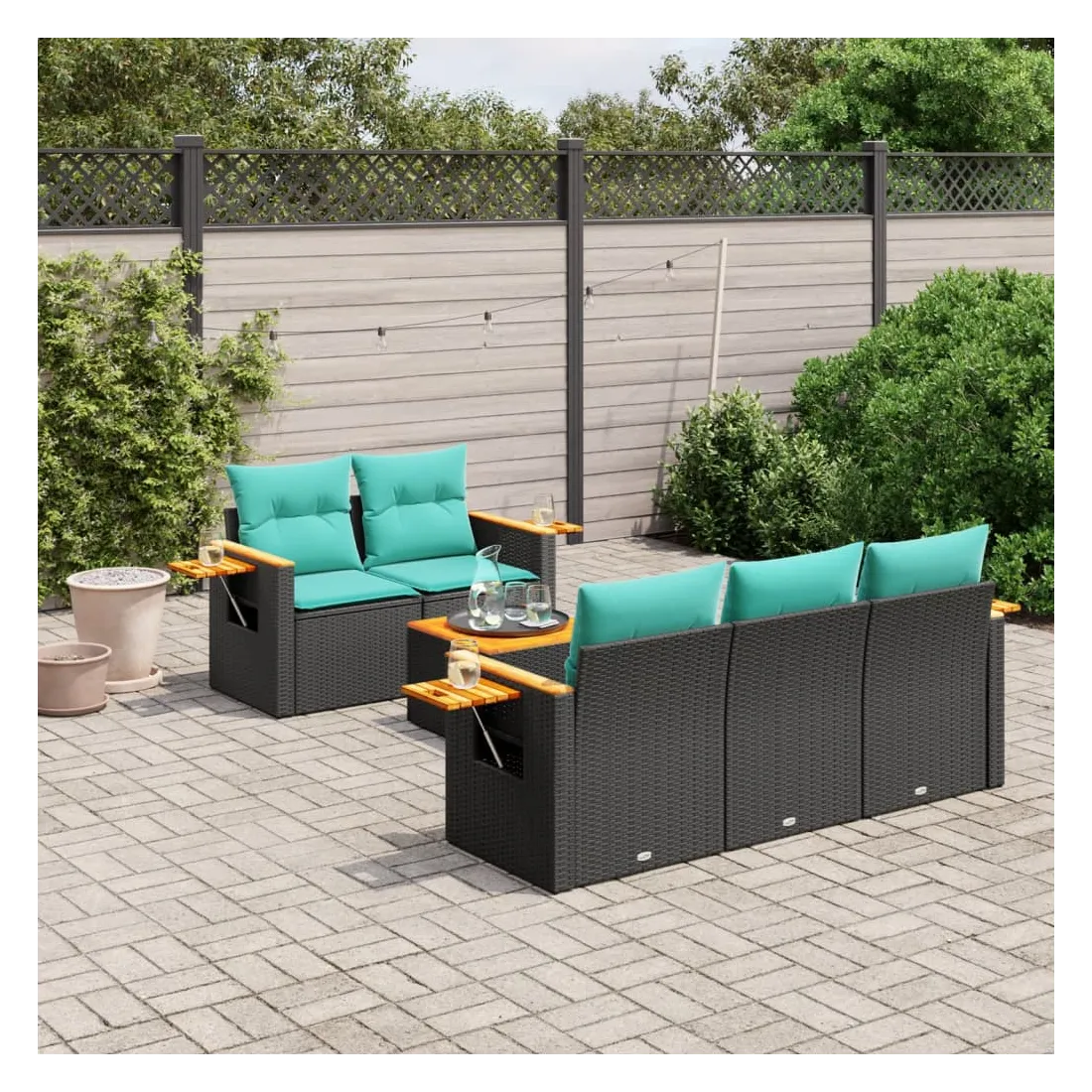 vidaXLCet ensemble de canapés de jardin est le complément parfait de votre arrière-cour, terrasse ou patio, offrant un espace confortable et accueillant pour discuter avec la famille et les amis ou simplement se détendre et profiter de l'extérieur. Matériau durable : la résine tressée, également connue sous le nom de poly rotin, est un matériau synthétique solide et nécessitant peu d'entretien qui ressemble au rotin naturel. Il est léger, facile à nettoyer et couramment utilisé pour les meubles d'extérieur en raison de sa durabilité et de ses propriétés de résistance aux intempéries.Dessus stable et facile à nettoyer : cette table de jardin a un dessus en bois d'acacia robuste, durable et facile à nettoyer avec un chiffon humide.Table d'appoint pratique : ce mobilier d'extérieur comprend une table d'appoint pliable avec un ressort à gaz sur les accoudoirs, offrant un endroit pratique pour garder vos essentiels à portée de main.Housse amovible et lavable : ces coussins de siège sont dotés de housses amovibles pour un lavage et un entretien faciles.Conception modulaire : cet ensemble de meubles d'extérieur a une conception modulaire, ce qui le rend complètement flexible et facile à déplacer, afin que vous puissiez créer un agencement de meubles d'extérieur personnalisé. Bon à savoir :Pour que vos meubles d'extérieur restent beaux, nous vous recommandons de les protéger avec une housse imperméable.