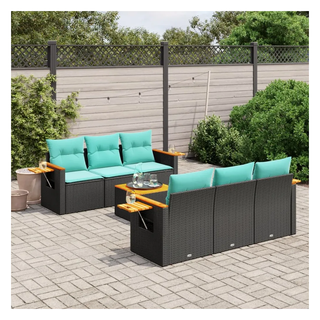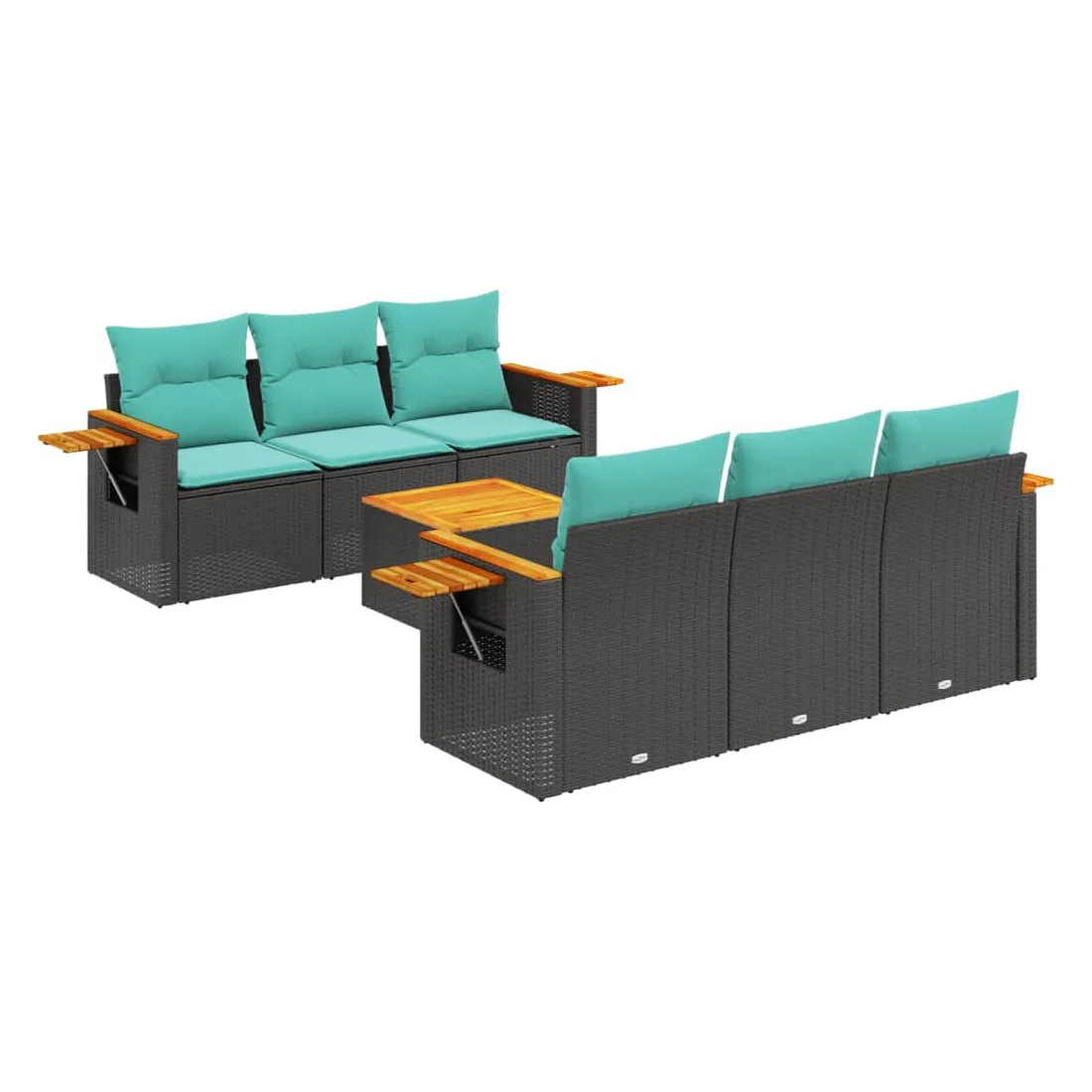 Salon de jardin 7 pcs avec coussins noir résine tressée