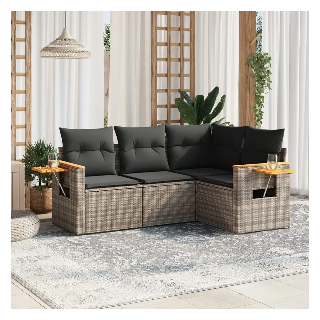 - Matériau : résine tressée, acier enduit de poudre, bois d'acacia massif avec finition à l'huile