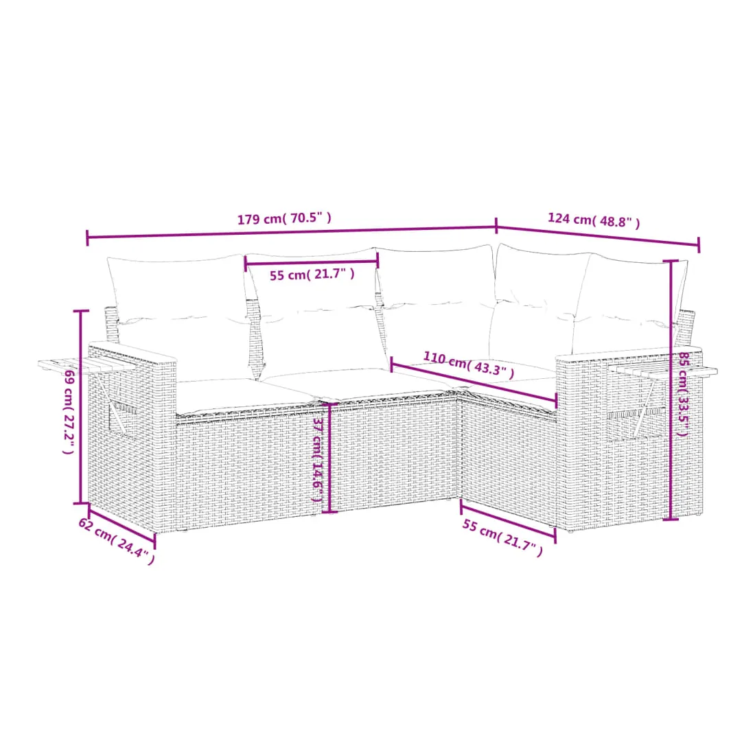 - Dimensions : 62/85 x 62 x 69 cm (l x P x H)