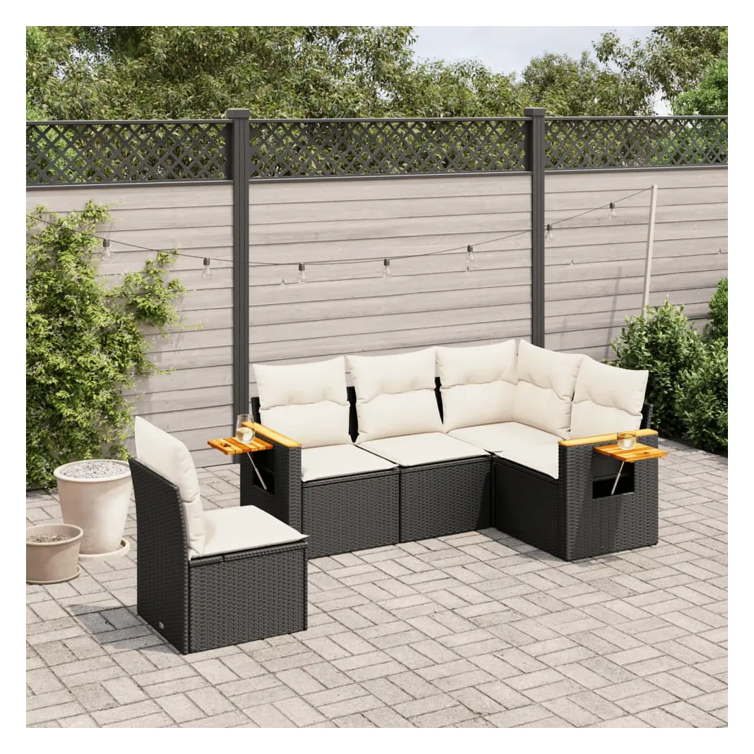 Cet ensemble de canapés de jardin est le complément parfait de votre arrière-cour, terrasse ou patio, offrant un espace confortable et accueillant pour discuter avec la famille et les amis ou simplement se détendre et profiter de l'extérieur. Matériau durable : la résine tressée, également connue sous le nom de poly rotin, est un matériau synthétique solide et nécessitant peu d'entretien qui ressemble au rotin naturel. Il est léger, facile à nettoyer et couramment utilisé pour les meubles d'extérieur en raison de sa durabilité et de ses propriétés de résistance aux intempéries.Table d'appoint pratique : ce mobilier d'extérieur comprend une table d'appoint pliable avec un ressort à gaz sur les accoudoirs, offrant un endroit pratique pour garder vos essentiels à portée de main.Housse amovible et lavable : ces coussins de siège sont dotés de housses amovibles pour un lavage et un entretien faciles.Conception modulaire : cet ensemble de meubles d'extérieur a une conception modulaire, ce qui le rend complètement flexible et facile à déplacer, afin que vous puissiez créer un agencement de meubles d'extérieur personnalisé. Bon à savoir :Pour que vos meubles d'extérieur restent beaux, nous vous recommandons de les protéger avec une housse imperméable.