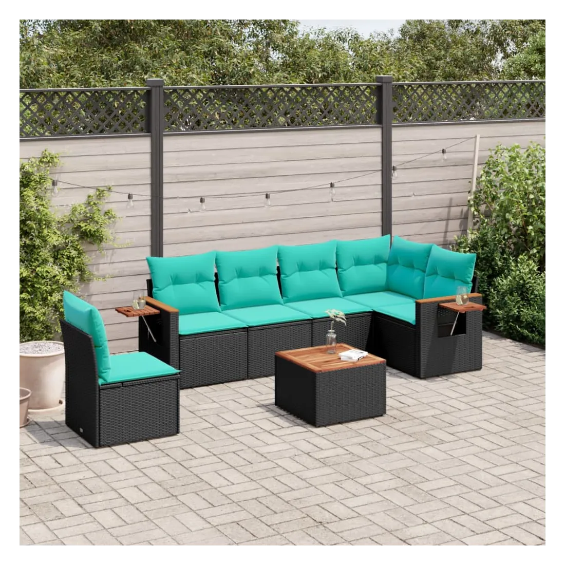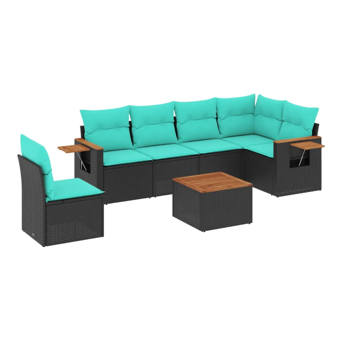 Salon de jardin 7 pcs avec coussins noir résine tressée