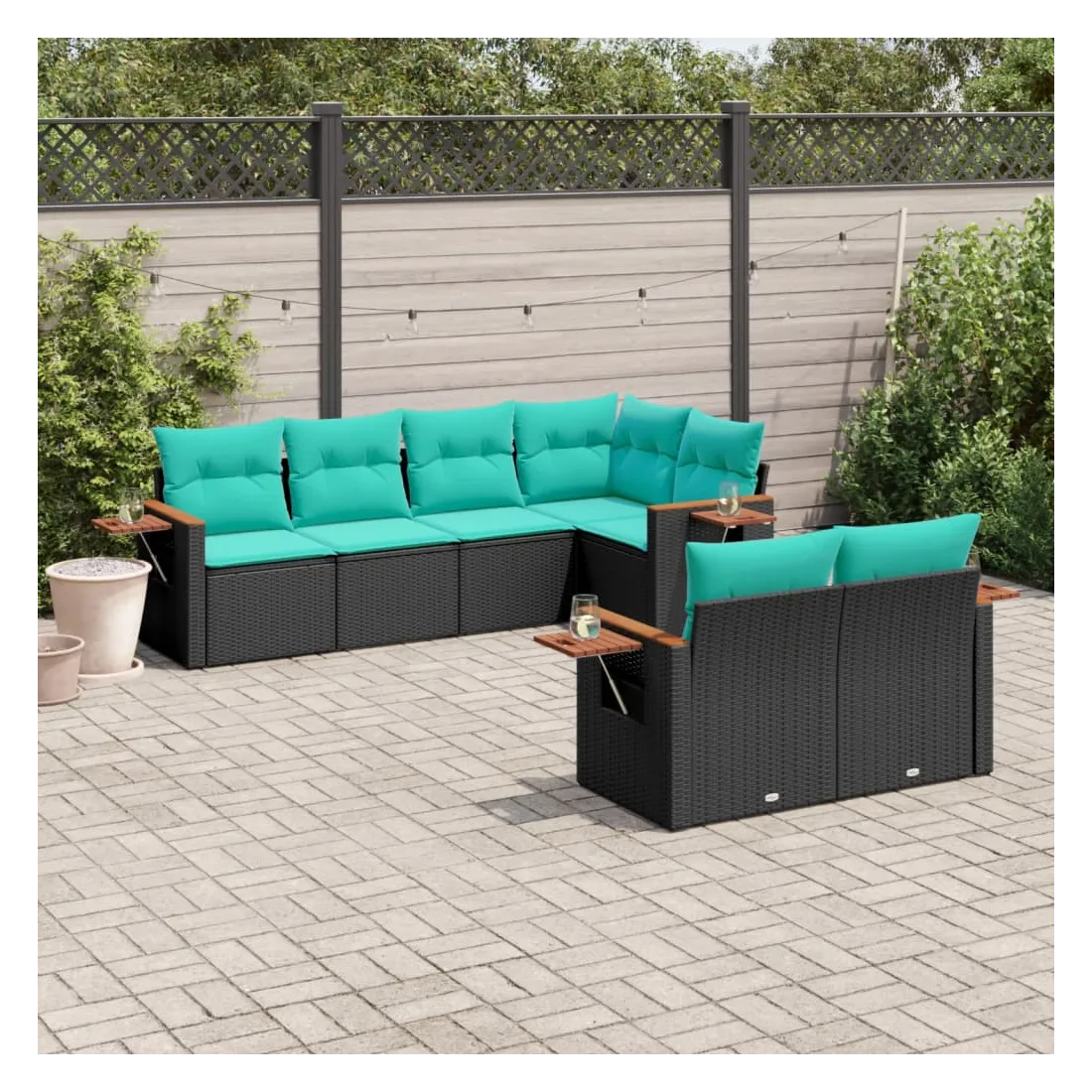 Cet ensemble de canapés de jardin est le complément parfait de votre arrière-cour, terrasse ou patio, offrant un espace confortable et accueillant pour discuter avec la famille et les amis ou simplement se détendre et profiter de l'extérieur. Matériau durable : la résine tressée, également connue sous le nom de poly rotin, est un matériau synthétique solide et nécessitant peu d'entretien qui ressemble au rotin naturel. Il est léger, facile à nettoyer et couramment utilisé pour les meubles d'extérieur en raison de sa durabilité et de ses propriétés de résistance aux intempéries.Table d'appoint pratique : ce mobilier d'extérieur comprend une table d'appoint pliable avec un ressort à gaz sur les accoudoirs, offrant un endroit pratique pour garder vos essentiels à portée de main.Housse amovible et lavable : ces coussins de siège sont dotés de housses amovibles pour un lavage et un entretien faciles.Conception modulaire : cet ensemble de meubles d'extérieur a une conception modulaire, ce qui le rend complètement flexible et facile à déplacer, afin que vous puissiez créer un agencement de meubles d'extérieur personnalisé. Bon à savoir :Pour que vos meubles d'extérieur restent beaux, nous vous recommandons de les protéger avec une housse imperméable.