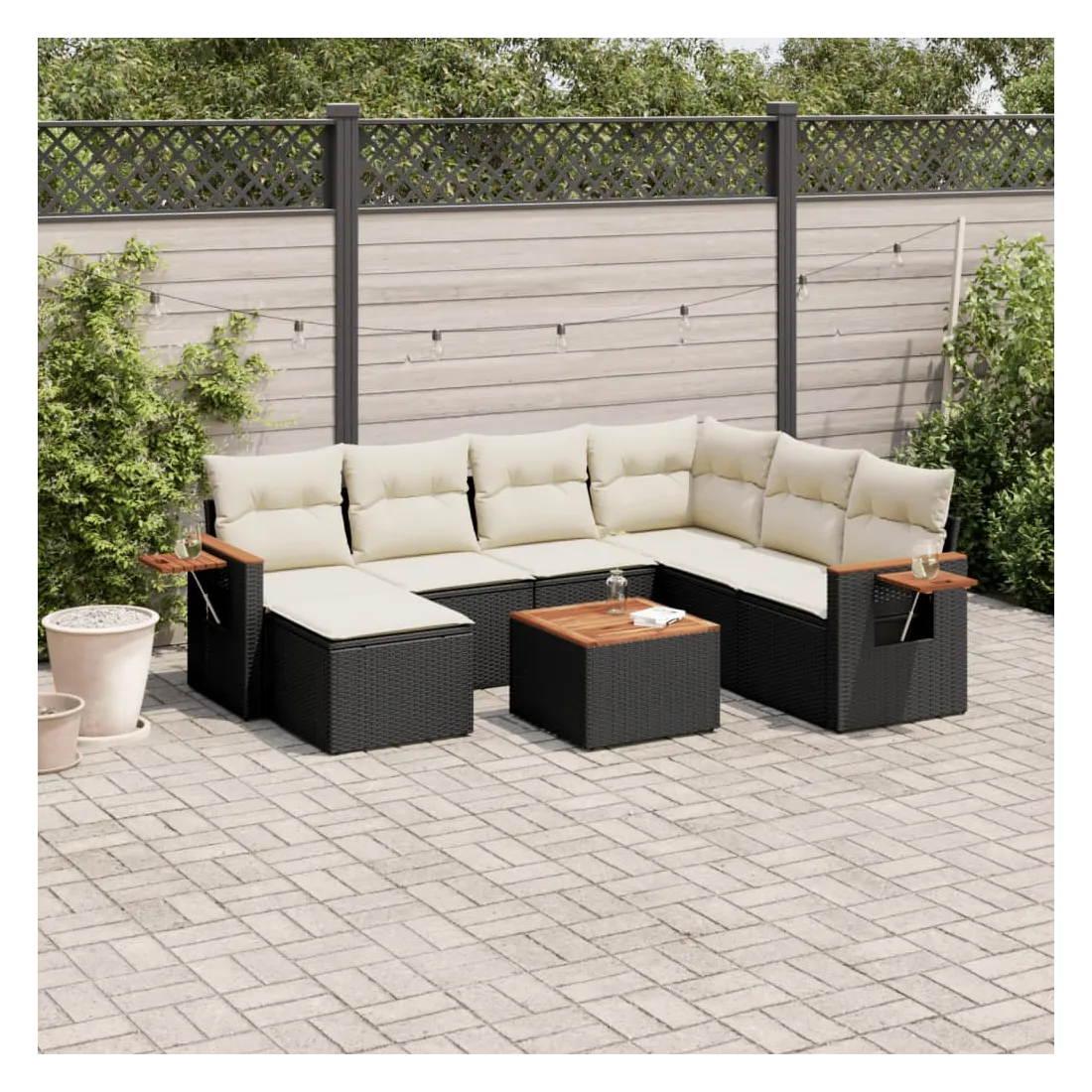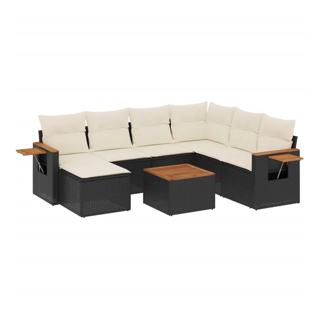Cet ensemble de canapés de jardin est le complément parfait de votre arrière-cour, terrasse ou patio, offrant un espace confortable et accueillant pour discuter avec la famille et les amis ou simplement se détendre et profiter de l'extérieur. Matériau durable : la résine tressée, également connue sous le nom de poly rotin, est un matériau synthétique solide et nécessitant peu d'entretien qui ressemble au rotin naturel. Il est léger, facile à nettoyer et couramment utilisé pour les meubles d'extérieur en raison de sa durabilité et de ses propriétés de résistance aux intempéries.Dessus stable et facile à nettoyer : cette table de jardin a un dessus en bois d'acacia robuste, durable et facile à nettoyer avec un chiffon humide.Table d'appoint pratique : ce mobilier d'extérieur comprend une table d'appoint pliable avec un ressort à gaz sur les accoudoirs, offrant un endroit pratique pour garder vos essentiels à portée de main.Housse amovible et lavable : ces coussins de siège sont dotés de housses amovibles pour un lavage et un entretien faciles.Conception modulaire : cet ensemble de meubles d'extérieur a une conception modulaire, ce qui le rend complètement flexible et facile à déplacer, afin que vous puissiez créer un agencement de meubles d'extérieur personnalisé. Bon à savoir :Pour que vos meubles d'extérieur restent beaux, nous vous recommandons de les protéger avec une housse imperméable.
