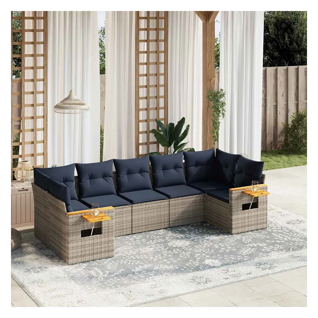Cet ensemble de canapés de jardin est le complément parfait de votre arrière-cour, terrasse ou patio, offrant un espace confortable et accueillant pour discuter avec la famille et les amis ou simplement se détendre et profiter de l'extérieur. Matériau durable : la résine tressée, également connue sous le nom de poly rotin, est un matériau synthétique solide et nécessitant peu d'entretien qui ressemble au rotin naturel. Il est léger, facile à nettoyer et couramment utilisé pour les meubles d'extérieur en raison de sa durabilité et de ses propriétés de résistance aux intempéries.Table d'appoint pratique : ce mobilier d'extérieur comprend une table d'appoint pliable avec un ressort à gaz sur les accoudoirs, offrant un endroit pratique pour garder vos essentiels à portée de main.Housse amovible et lavable : ces coussins de siège sont dotés de housses amovibles pour un lavage et un entretien faciles.Conception modulaire : cet ensemble de meubles d'extérieur a une conception modulaire, ce qui le rend complètement flexible et facile à déplacer, afin que vous puissiez créer un agencement de meubles d'extérieur personnalisé. Bon à savoir :Pour que vos meubles d'extérieur restent beaux, nous vous recommandons de les protéger avec une housse imperméable.