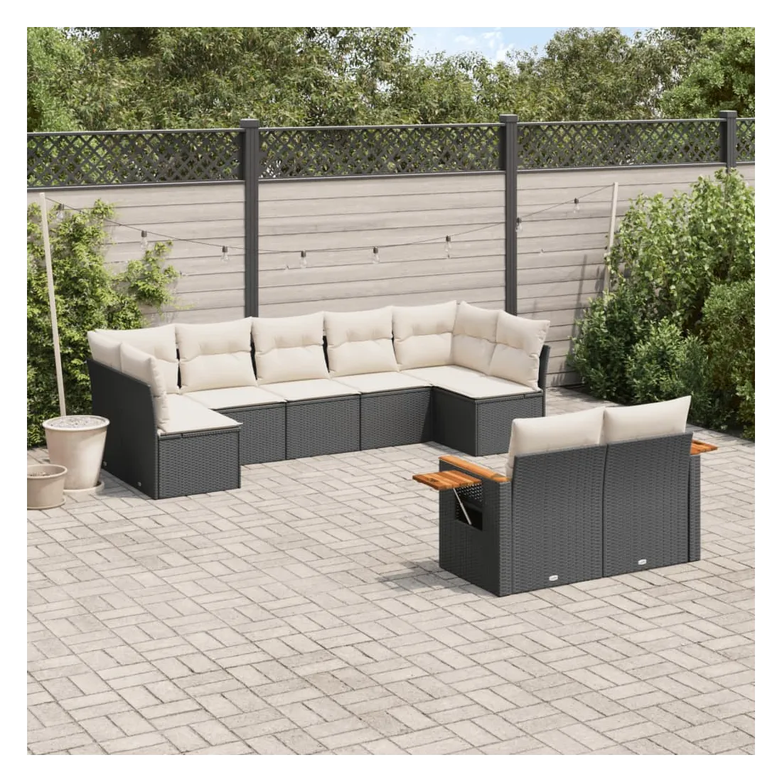 Salon de jardin 9 pcs avec coussins noir résine tressée