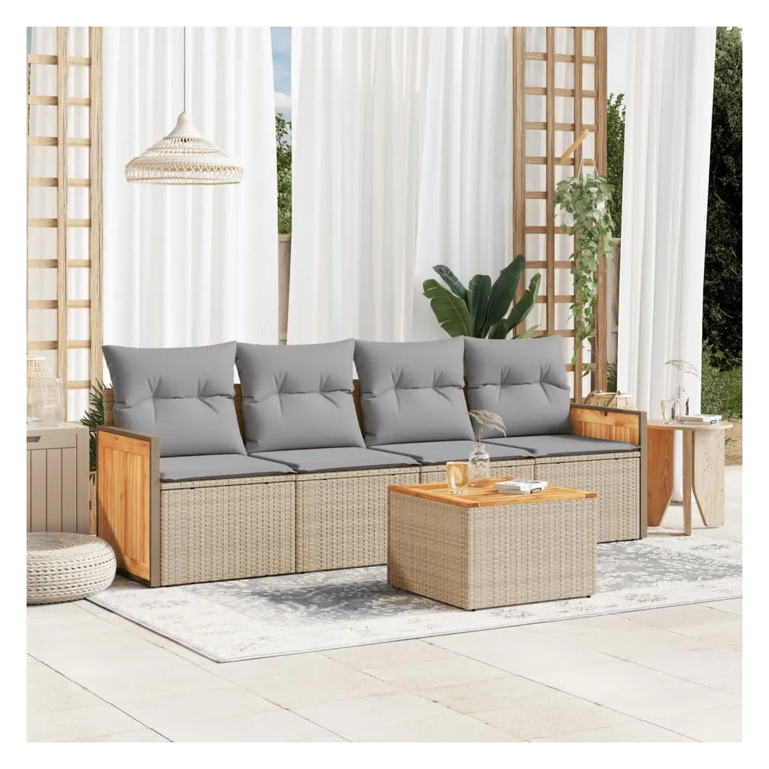 Cet ensemble de canapés de jardin est le complément parfait de votre arrière-cour, terrasse ou patio, offrant un espace confortable et accueillant pour discuter avec la famille et les amis ou simplement se détendre et profiter de l'extérieur. Matériau durable : la résine tressée, également connue sous le nom de poly rotin, est un matériau synthétique solide et nécessitant peu d'entretien qui ressemble au rotin naturel. Il est léger, facile à nettoyer et couramment utilisé pour les meubles d'extérieur en raison de sa durabilité et de ses propriétés de résistance aux intempéries.Expérience d'assise confortable : ce mobilier d'extérieur, doté de coussins épais, offre une expérience d'assise confortable.Dessus stable et facile à nettoyer : cette table de jardin a un dessus en bois d'acacia robuste, durable et facile à nettoyer avec un chiffon humide.Housse amovible et lavable : ces coussins de siège sont dotés de housses amovibles pour un lavage et un entretien faciles.Conception modulaire : cet ensemble de meubles d'extérieur a une conception modulaire, ce qui le rend complètement flexible et facile à déplacer, afin que vous puissiez créer un agencement de meubles d'extérieur personnalisé. Bon à savoir :Pour que vos meubles d'extérieur restent beaux, nous vous recommandons de les protéger avec une housse imperméable.