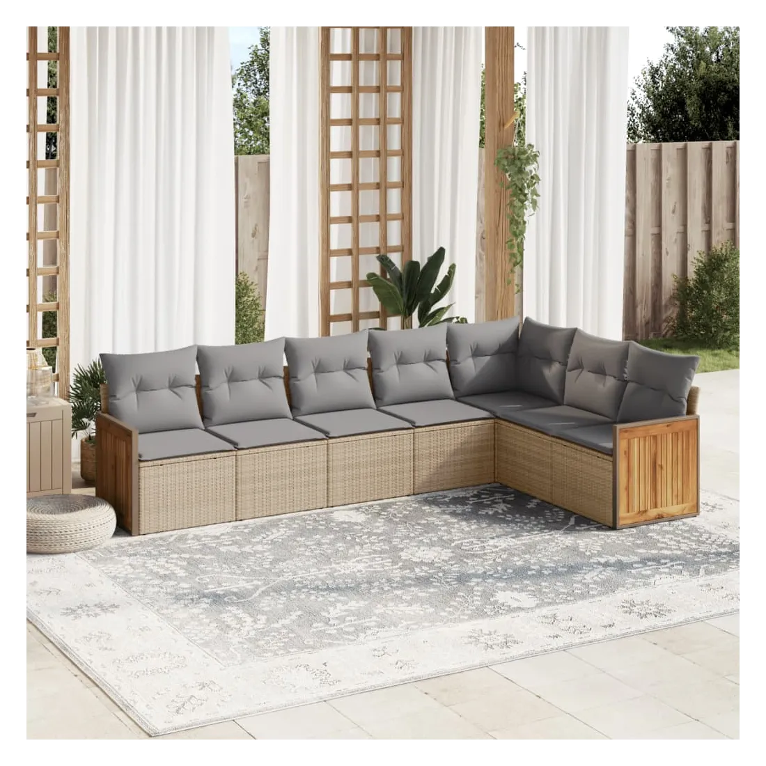 Cet ensemble de canapés de jardin est le complément parfait de votre arrière-cour, terrasse ou patio, offrant un espace confortable et accueillant pour discuter avec la famille et les amis ou simplement se détendre et profiter de l'extérieur. Matériau durable : la résine tressée, également connue sous le nom de poly rotin, est un matériau synthétique solide et nécessitant peu d'entretien qui ressemble au rotin naturel. Il est léger, facile à nettoyer et couramment utilisé pour les meubles d'extérieur en raison de sa durabilité et de ses propriétés de résistance aux intempéries.Expérience d'assise confortable : ce mobilier d'extérieur, doté de coussins épais, offre une expérience d'assise confortable.Housse amovible et lavable : ces coussins de siège sont dotés de housses amovibles pour un lavage et un entretien faciles.Conception modulaire : cet ensemble de meubles d'extérieur a une conception modulaire, ce qui le rend complètement flexible et facile à déplacer, afin que vous puissiez créer un agencement de meubles d'extérieur personnalisé. Bon à savoir :Pour que vos meubles d'extérieur restent beaux, nous vous recommandons de les protéger avec une housse imperméable.