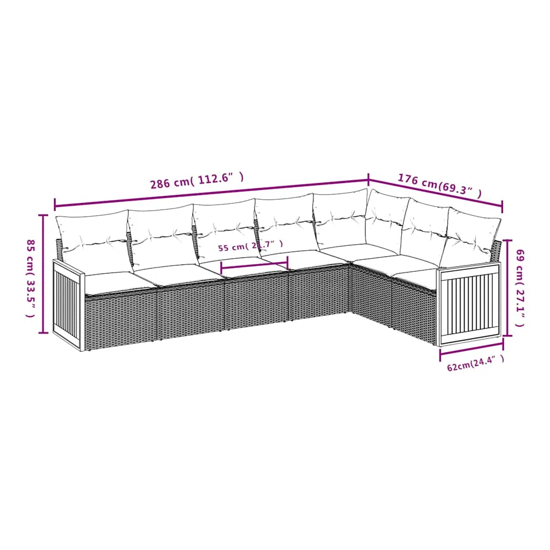- Dimensions du coussin de dossier : 55 x 45 x 13 cm (L x l x é)