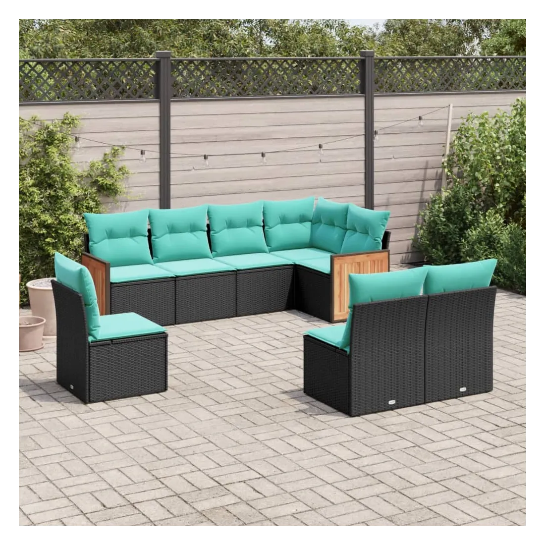 Cet ensemble de canapés de jardin est le complément parfait de votre arrière-cour, terrasse ou patio, offrant un espace confortable et accueillant pour discuter avec la famille et les amis ou simplement se détendre et profiter de l'extérieur. Matériau durable : la résine tressée, également connue sous le nom de poly rotin, est un matériau synthétique solide et nécessitant peu d'entretien qui ressemble au rotin naturel. Elle est légère, facile à nettoyer et couramment utilisée pour les meubles d'extérieur en raison de sa durabilité et de ses propriétés de résistance aux intempéries.Expérience d'assise confortable : ce mobilier d'extérieur, doté de coussins épais, offre une expérience d'assise confortable.Housse amovible et lavable : ces coussins de siège sont dotés de housses amovibles pour un lavage et un entretien faciles.Conception modulaire : cet ensemble de meubles d'extérieur a une conception modulaire, ce qui le rend complètement flexible et facile à déplacer, afin que vous puissiez créer un agencement de meubles d'extérieur personnalisé. Bon à savoir :Pour que vos meubles d'extérieur restent beaux, nous vous recommandons de les protéger avec une housse imperméable.
