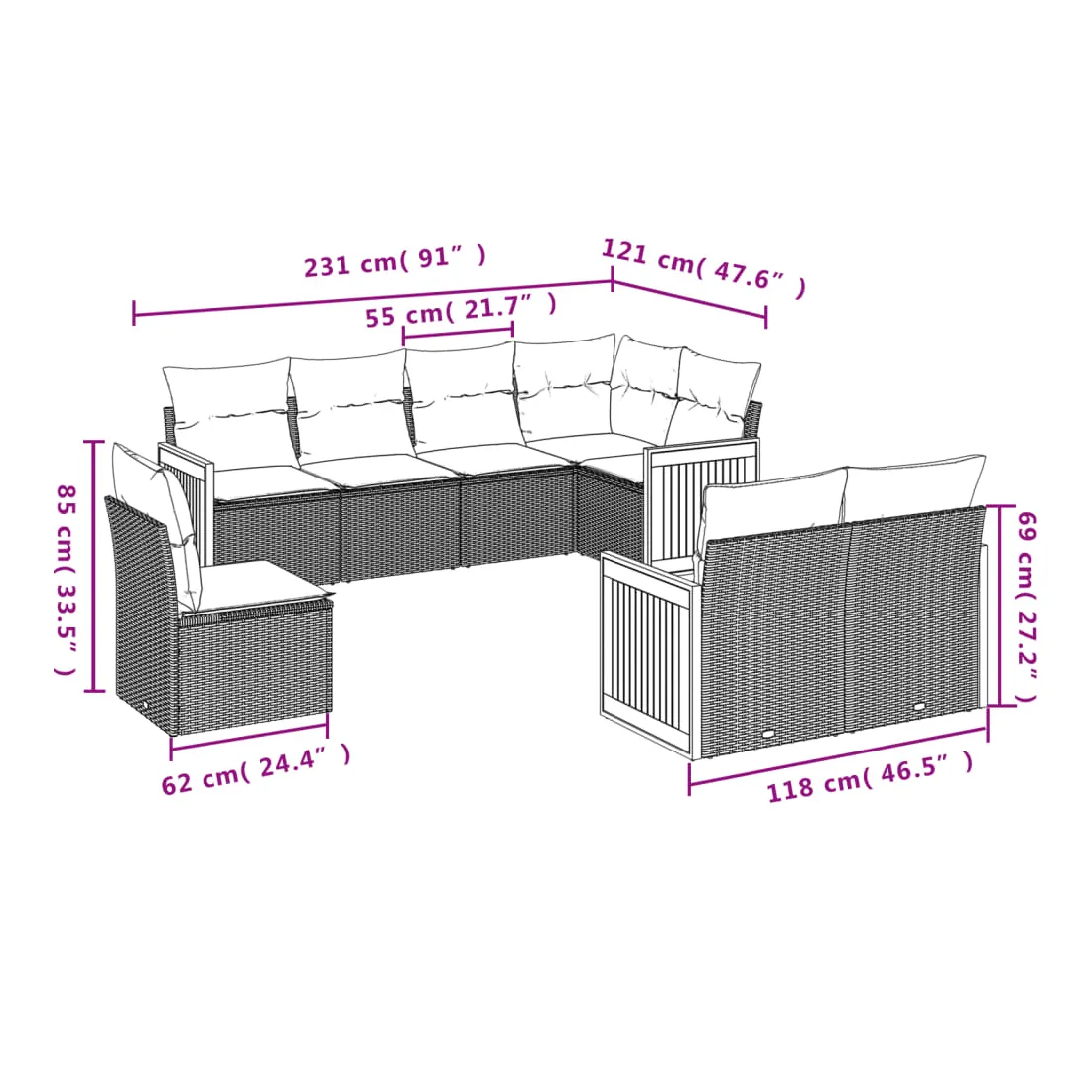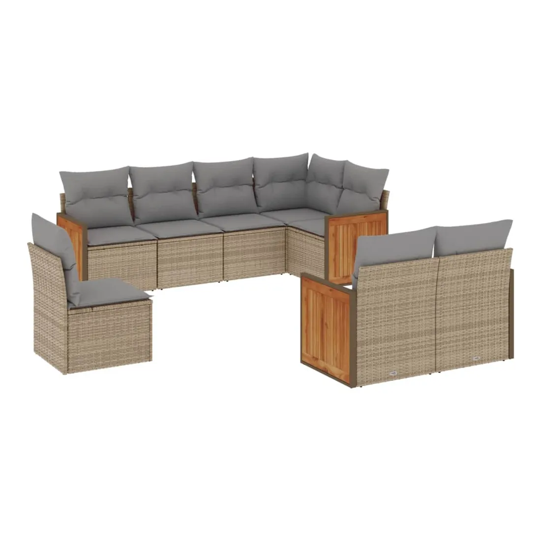 Salon de jardin avec coussins 8 pcs beige résine tressée