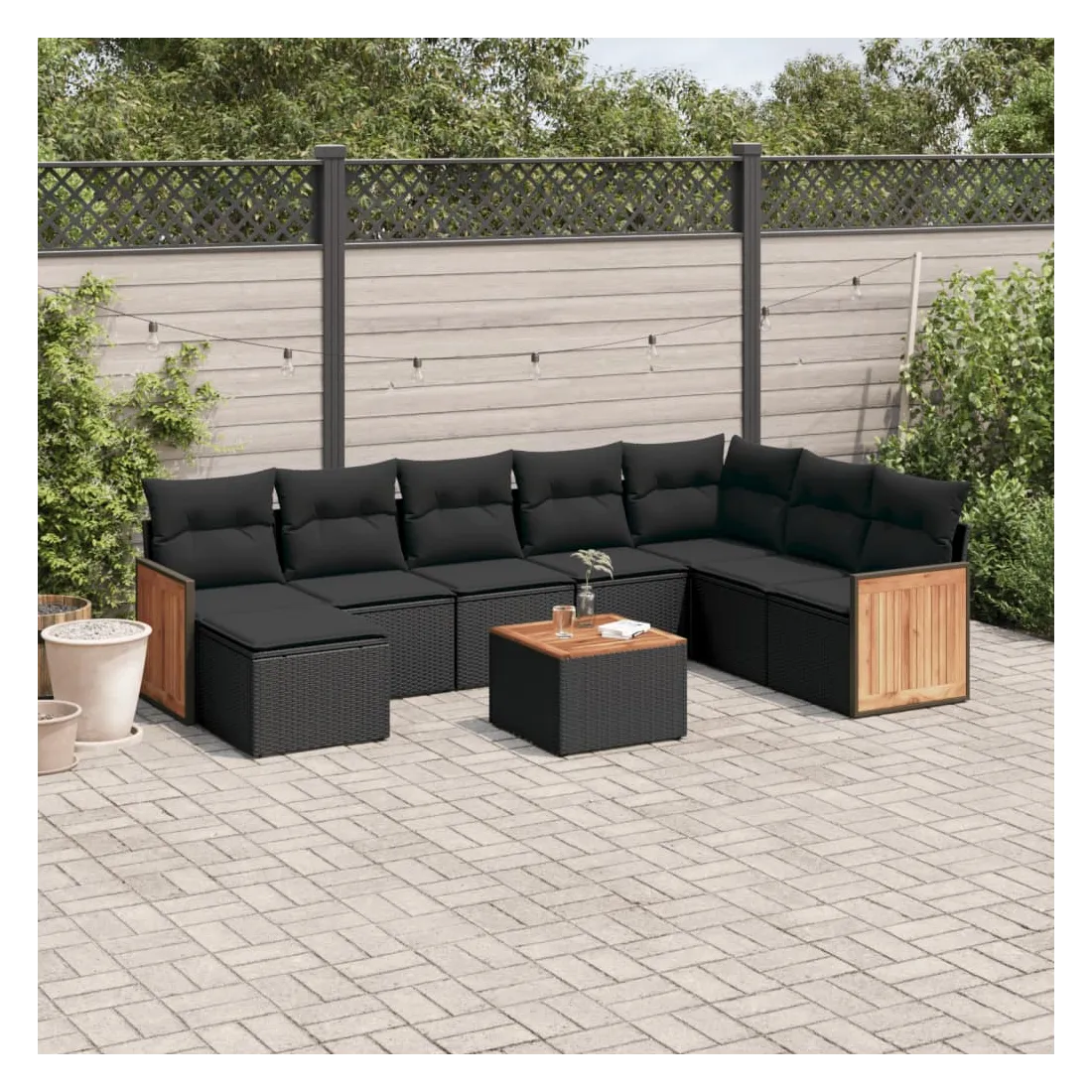 Cet ensemble de canapés de jardin est le complément parfait de votre arrière-cour, terrasse ou patio, offrant un espace confortable et accueillant pour discuter avec la famille et les amis ou simplement se détendre et profiter de l'extérieur. Matériau durable : la résine tressée, également connue sous le nom de poly rotin, est un matériau synthétique solide et nécessitant peu d'entretien qui ressemble au rotin naturel. Il est léger, facile à nettoyer et couramment utilisé pour les meubles d'extérieur en raison de sa durabilité et de ses propriétés de résistance aux intempéries.Expérience d'assise confortable : ce mobilier d'extérieur, doté de coussins épais, offre une expérience d'assise confortable.Dessus stable et facile à nettoyer : cette table de jardin a un dessus en bois d'acacia robuste, durable et facile à nettoyer avec un chiffon humide.Housse amovible et lavable : ces coussins de siège sont dotés de housses amovibles pour un lavage et un entretien faciles.Conception modulaire : cet ensemble de meubles d'extérieur a une conception modulaire, ce qui le rend complètement flexible et facile à déplacer, afin que vous puissiez créer un agencement de meubles d'extérieur personnalisé. Bon à savoir :Pour que vos meubles d'extérieur restent beaux, nous vous recommandons de les protéger avec une housse imperméable.