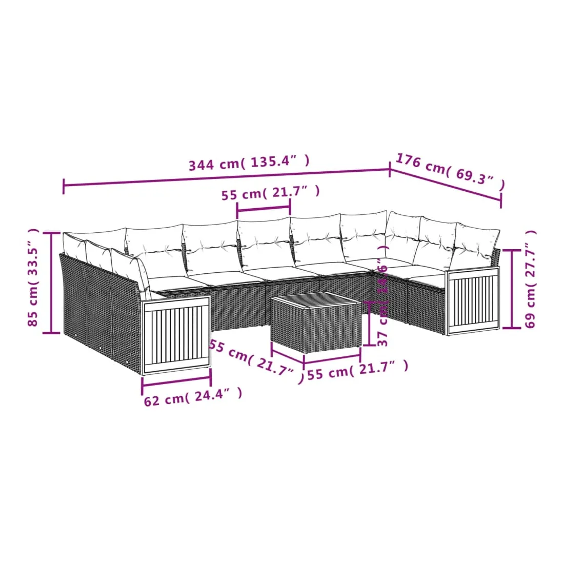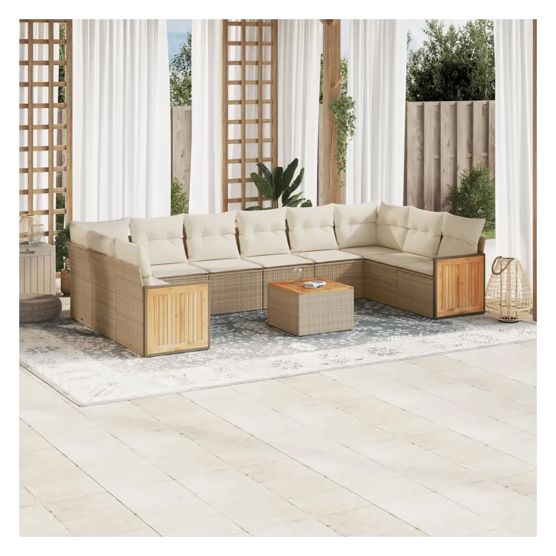 Salon de jardin 11 pcs avec coussins beige résine tressée